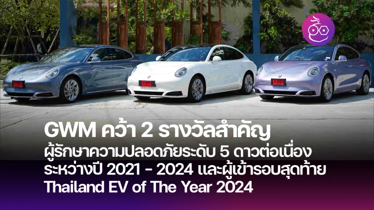 GWM คว้า 2 รางวัล “ผู้รักษามาตรฐานความปลอดภัยระดับ 5 ดาวได้อย่างต่อเนื่องระหว่างปี 2021-2024” และ “ผู้เข้ารอบสุดท้าย Thailand EV of the Year 2024”