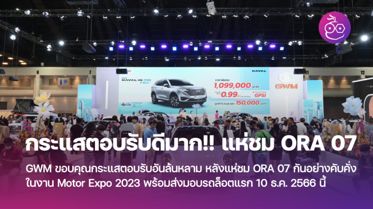 Great Wall Motor ขอบคุณกระแสตอบรับอันล้นหลามในงาน Motor Expo 2023 หลังแฟน ๆ ชาวไทย แห่ชม ORA 07 กันอย่างคับคั่ง พร้อมส่งมอบรถล็อตแรก 10 ธันวาคม 2566 นี้