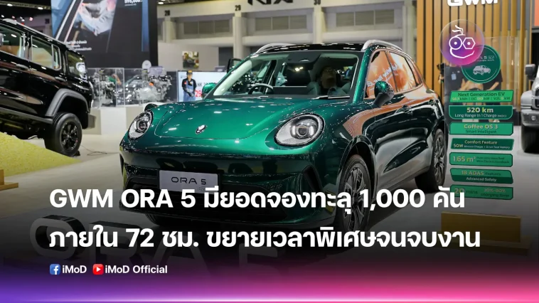 GWM ORA 5 มียอดจองทะลุ 1,000 คัน ภายใน 72 ชม. ประกาศขยายเวลาของราคาสุดพิเศษ จนจบงานมอเตอร์โชว์ฯ พร้อมเตรียมเพิ่มกำลังการผลิตที่โรงงานจังหวัดระยอง