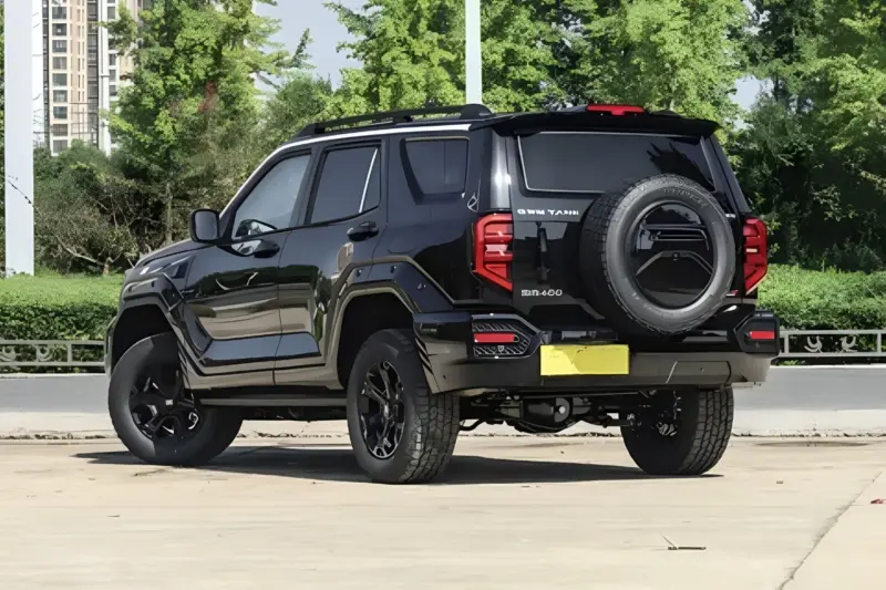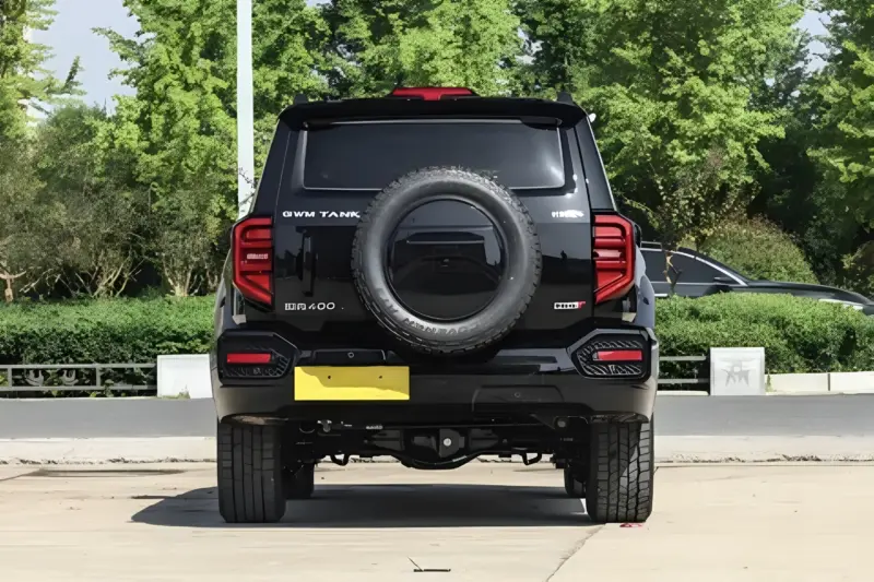 ด้านหลังยังคงมียางอะไหล่ติดตั้งภายนอกพร้อมฝาครอบแบบปลดเร็ว และไฟท้ายทรงหลายเหลี่ยม สีภายนอกมีให้เลือก ได้แก่ Phantom Black, Wing Silver, Nebula Grey และ Dunhuang Purple
