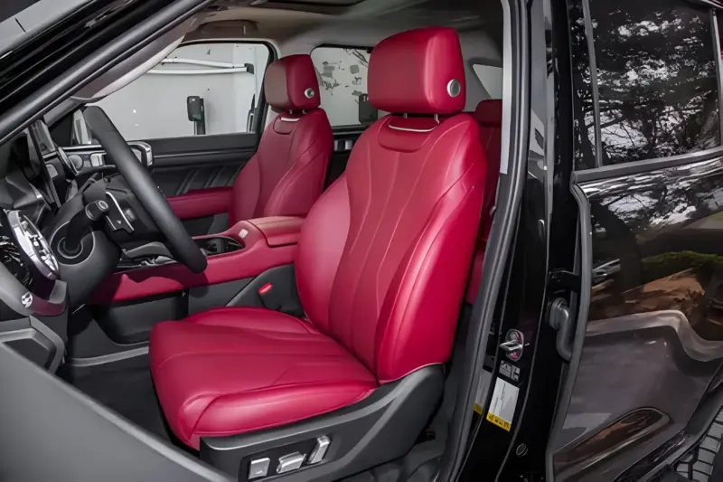 ส่วนเบาะคู่หน้ามีระบบนวด 8 จุด สำหรับผู้โดยสารด้านหลัง จะมีหน้าจอความบันเทิงขนาด 15.6 นิ้ว, ตู้เย็นขนาด 5.4 ลิตร และม่านบังแดดแบบปรับด้วยมือ