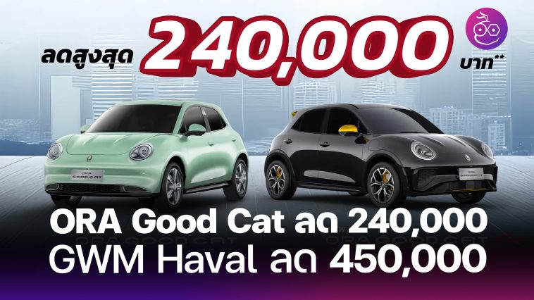 - GWM New ORA Good Cat รุ่น GT จากราคา 1,099,000 บาท เหลือเพียง 859,000 บาท (ส่วนลด 240,000 บาท)