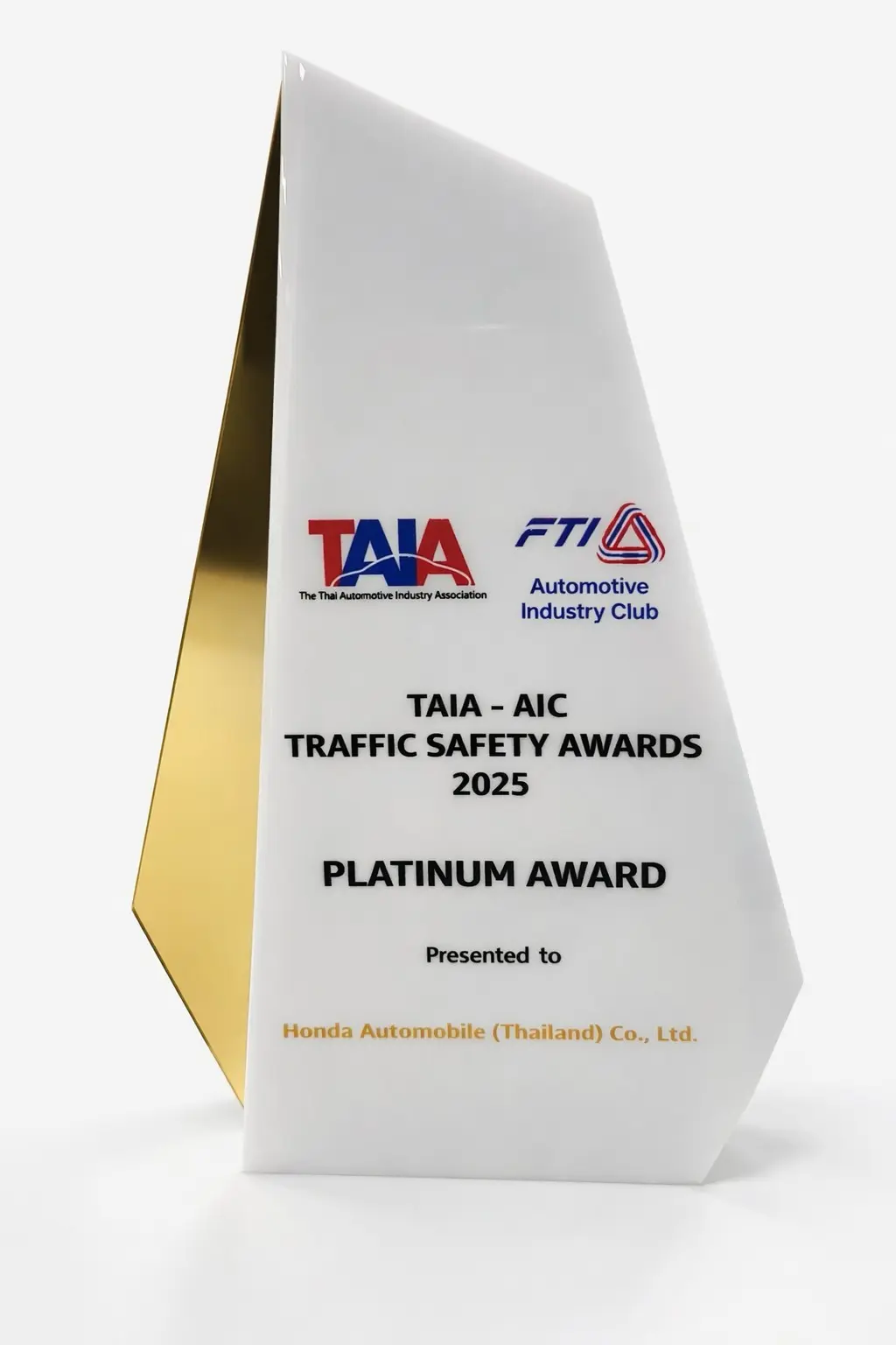 บริษัท ฮอนด้า ออโตโมบิล (ประเทศไทย) จำกัด คว้ารางวัลระดับ Platinum จากโครงการประกวดมาตรการองค์กรส่งเสริมความปลอดภัยทางถนน ประจำปี 2568 (TAIA-AIC Traffic Safety Awards 2025) จัดโดยสมาคมอุตสาหกรรมยานยนต์ไทย (TAIA) และกลุ่มอุตสาหกรรมยานยนต์ สภาอุตสาหกรรมแห่งประเทศไทย (AIC) โดยมีนายโคจิ อิวานามิ ประธานกรรมการบริหารและซีอีโอ เป็นตัวแทนรับรางวัล ซึ่งฮอนด้าเป็นหนึ่งในบริษัทกลุ่มยานยนต์ชั้นนำที่ได้รับรางวัลในครั้งนี้ ตอกย้ำความเป็นผู้นำด้านความปลอดภัยทางถนน และสะท้อนให้เห็นถึงมาตรฐานความปลอดภัยระดับสากล เพื่อมุ่งสู่เป้าหมายการสร้างสังคมที่มีอุบัติเหตุจากการจราจรเป็นศูนย์ให้เกิดขึ้นอย่างยั่งยืน