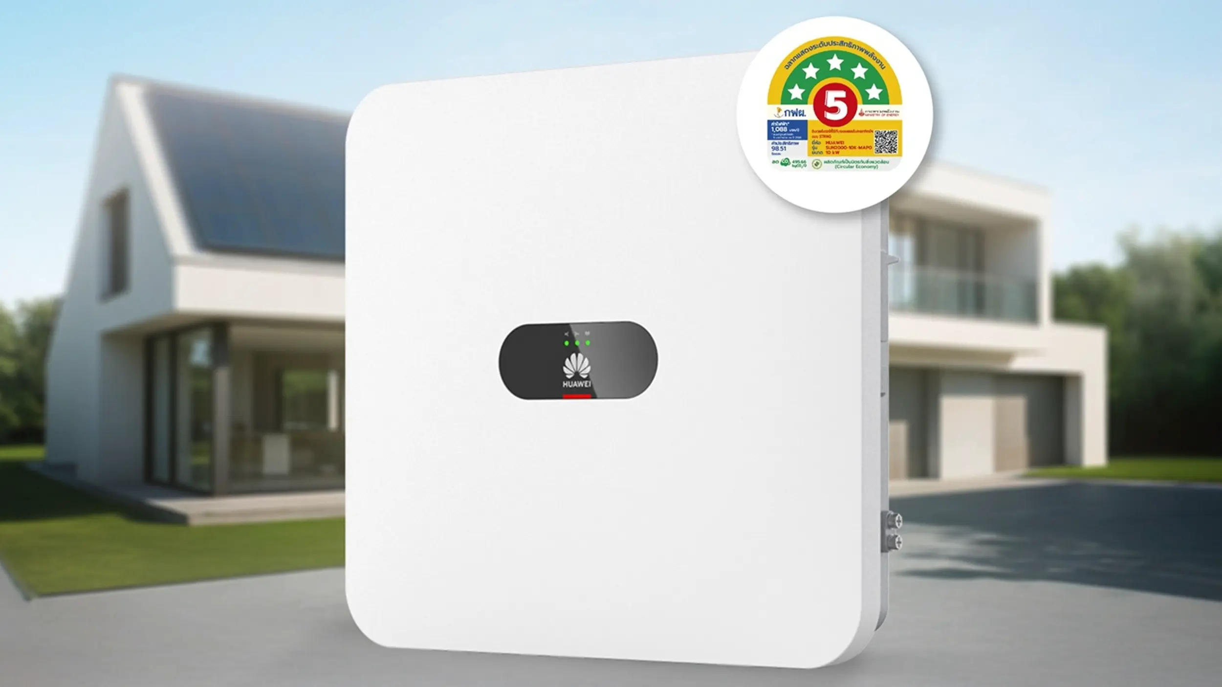 อุปกรณ์เครื่องเดียวที่ตอบโจทย์เงื่อนไขของมาตรการดังกล่าวคือ Huawei Inverter รุ่น 10K-MAP0 ซึ่งเป็นแบรนด์และรุ่นเดียวที่ได้รับ ฉลากประหยัดไฟเบอร์ 5 ระดับ 5 ดาว สะท้อนถึงประสิทธิภาพการใช้พลังงานและความคุ้มค่าในการใช้งาน ช่วยเพิ่มประสิทธิภาพในการผลิตไฟฟ้าจากพลังงานแสงอาทิตย์ และรองรับการใช้งานทั้งในภาคธุรกิจและภาคที่อยู่อาศัย นอกจากนี้ เครื่อง Inverter ต้องใช้งานร่วมกับแผงโซลาร์เซลล์ซึ่งถ้าได้รับฉลากประหยัดไฟเบอร์ 5 ระดับ 5 ดาว เช่นกัน จะช่วยเพิ่มประสิทธิภาพของระบบและความคุ้มค่าในการลงทุนได้มากยิ่งขึ้น
