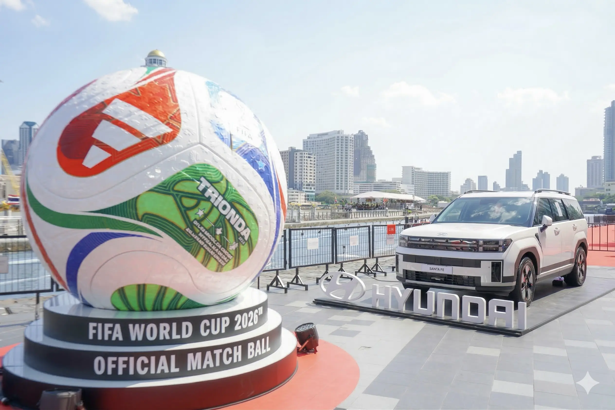 หนึ่งในไฮไลต์สำคัญคือ การจัดแสดงลูกฟุตบอลขนาดยักษ์ Trionda ลูกฟุตบอลที่ใช้ในการแข่งขัน FIFA World Cup 26™ อย่างเป็นทางการ ซึ่งสะท้อนพลังของเจ้าภาพทัวร์นาเมนต์ทั้ง 3 ประเทศ นำมาเป็นแลนด์มาร์กของบูท พร้อมมอบโอกาสสุดเอ็กซ์คลูซีฟกับการได้ใกล้ชิดกับถ้วยแชมป์อาเซียน ASEAN Hyundai Cup™ 2026 Trophy ที่นำมาให้แฟนฟุตบอลได้ชมและถ่ายภาพเป็นที่ระลึก สะท้อนบทบาทของฮุนไดในฐานะพันธมิตรสำคัญของการแข่งขันฟุตบอลทั้งระดับโลก และระดับภูมิภาค กลายเป็นพื้นที่ซึ่งคนรักรถและแฟนฟุตบอล ได้มาร่วมสัมผัสประสบการณ์ที่ไม่สามารถหาได้จากที่อื่น