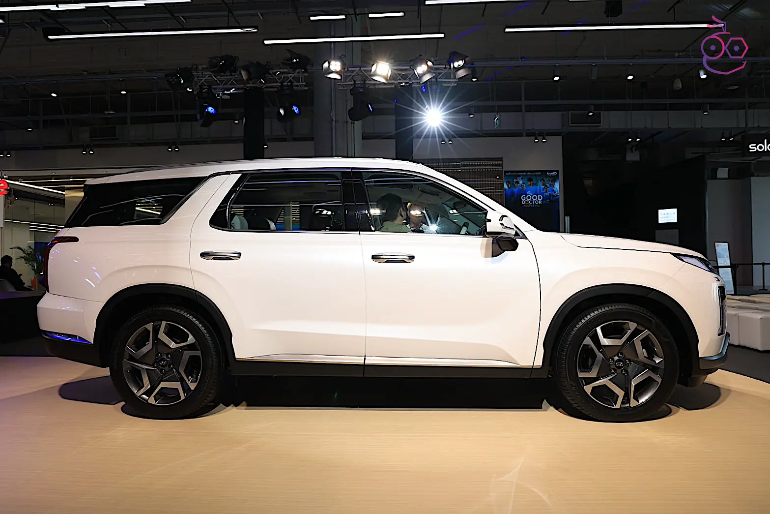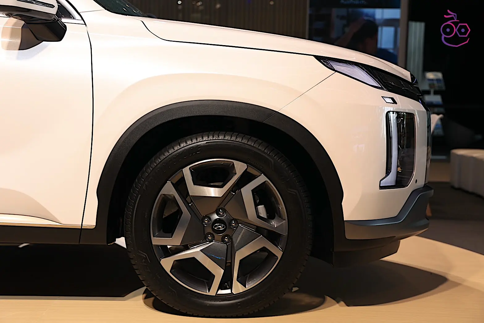 Hyundai Palisade มาพร้อมกระจังหน้า Parametric Shield ลุคพรีเมียม และล้ออัลลอยดีไซน์แบบ futuristic พร้อมกับไฟหน้า Daytime Running Lights มาพร้อมตัวถังให้เลือก 2 สี ได้แก่ สีขาว และสีดำ