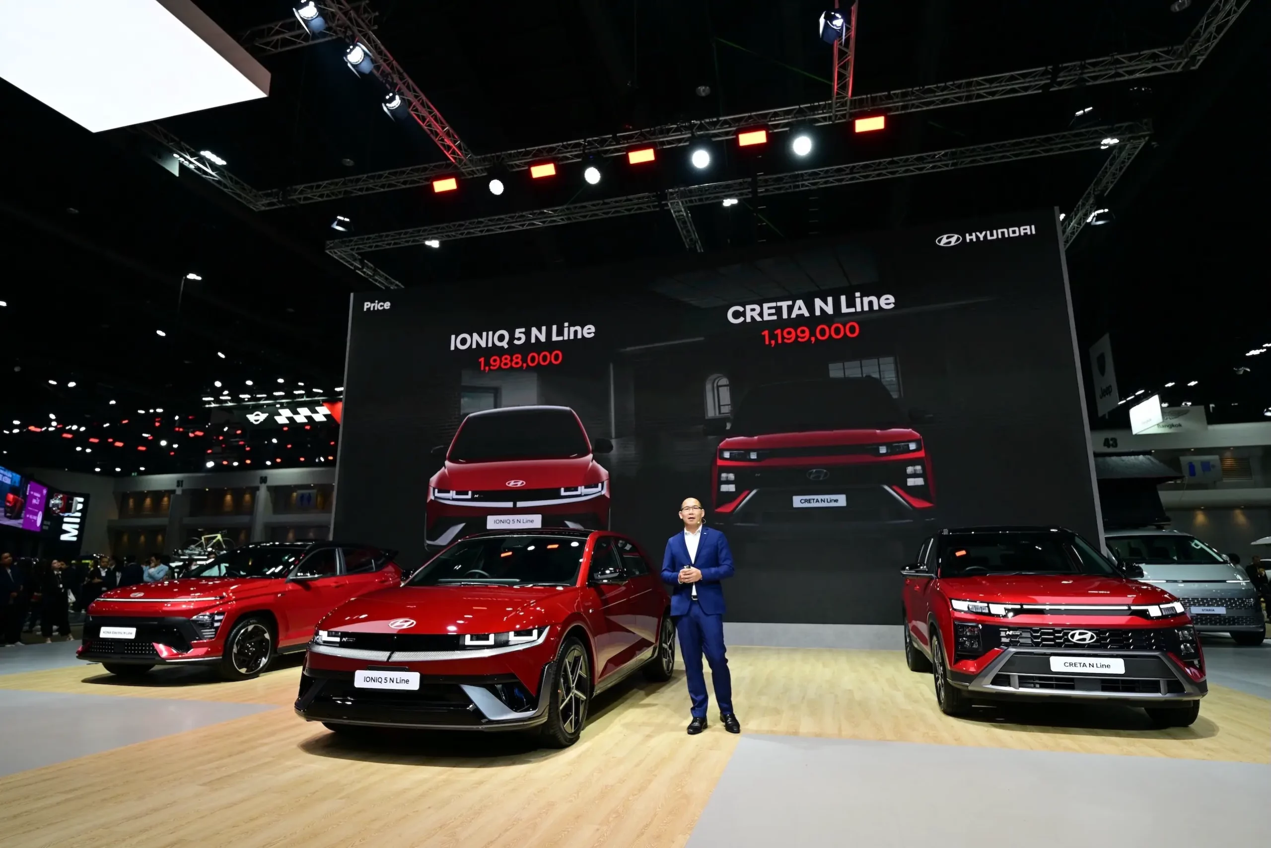 โดยเราเผยโฉม “N Line Series” พร้อมกันถึง 3 รุ่นในงาน ทั้ง IONIQ 5 N Line, CRETA N Line, และการจัดแสดง KONA Electric N Line ที่มาพร้อมสีไอคอนนิคของ N Line อย่างสี Dragon Red Pearl เพื่อตอบโจทย์ไลฟ์สไตล์ และเป็นทางเลือกของกลุ่มเป้าหมายที่แตกต่างกัน