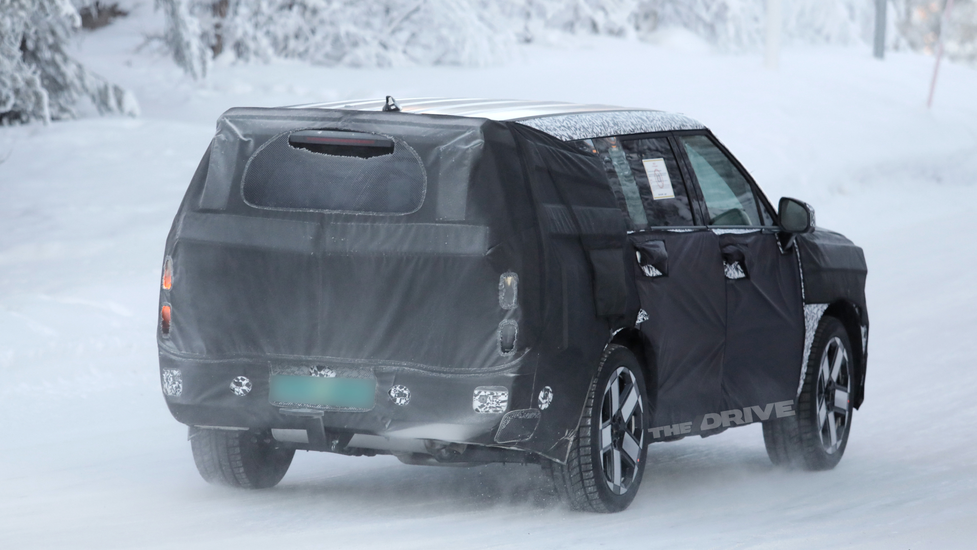 ด้านท้าย Santa FE รุ่นปี 2027 ไฟท้ายดูเหมือนจะถูกย้ายตำแหน่งจากกันชนขึ้นไปอยู่บริเวณด้านข้างของฝาท้าย ภาพรวมของรถดูตั้งตรงขึ้น และให้ความรู้สึกคล้ายรถ Off-Road “ทรงกล่อง” มากขึ้นกว่าเดิม