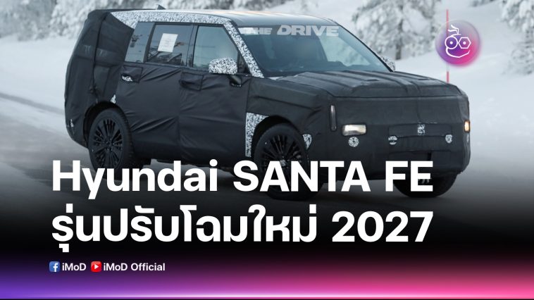 ภาพ Hyundai Santa Fe รุ่นปี 2027 วิ่งทดสอบได้เผยมา ถือเป็นการเผยแนวทางการปรับโฉมครั้งแรก แม้จะเป็นเพียงการปรับโฉมช่วงครึ่งอายุโมเดลนี้ แต่การพรางตัวกลับหุ้มมาหนามากผิดปกติ