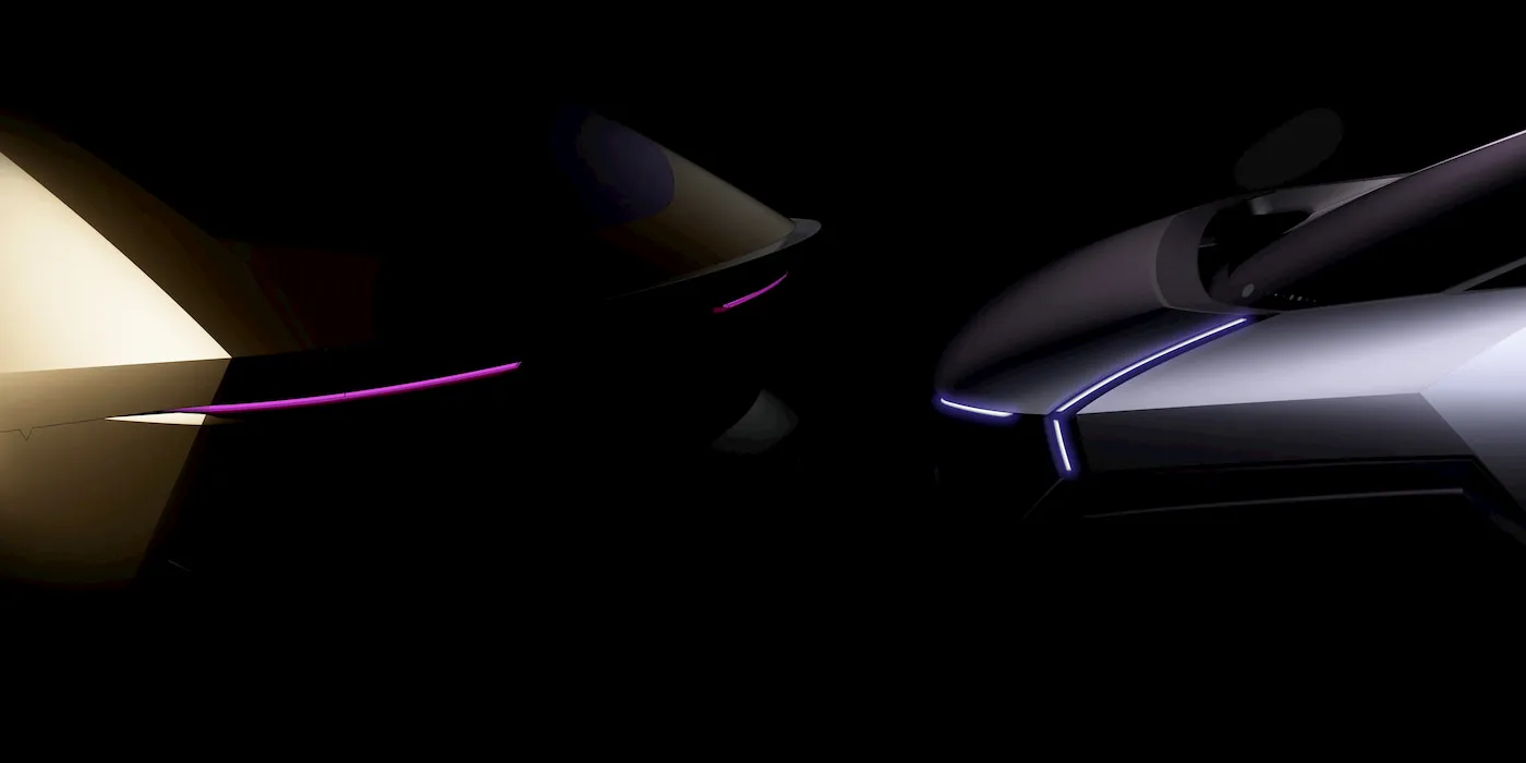 นอกจากนี้ Hyundai ยังได้ปล่อยภาพนิ่ง 2 ภาพที่เผยให้เห็นส่วนหน้าของรถ โดยคันหนึ่งดูเหมือนจะเป็นรถเก๋งสปอร์ตหรือรถคูเป้ (Coupe) ที่มีความคล้ายคลึงกับรถต้นแบบ Kia Vision Meta Turismo จุดที่น่าสนใจคือไฟหน้า LED แบบเรียวบาง แทนที่จะเป็นไฟแบบพิกเซล (Pixel Lighting) ซึ่งเป็นเอกลักษณ์ที่เราคุ้นตาในรุ่น IONIQ 5 และ IONIQ 9 ส่วนอีกรุ่นหนึ่งดูเหมือนจะเป็นรถครอสโอเวอร์ขนาดเล็กที่มีไฟท้ายเรียวบางและดูโฉบเฉี่ยว