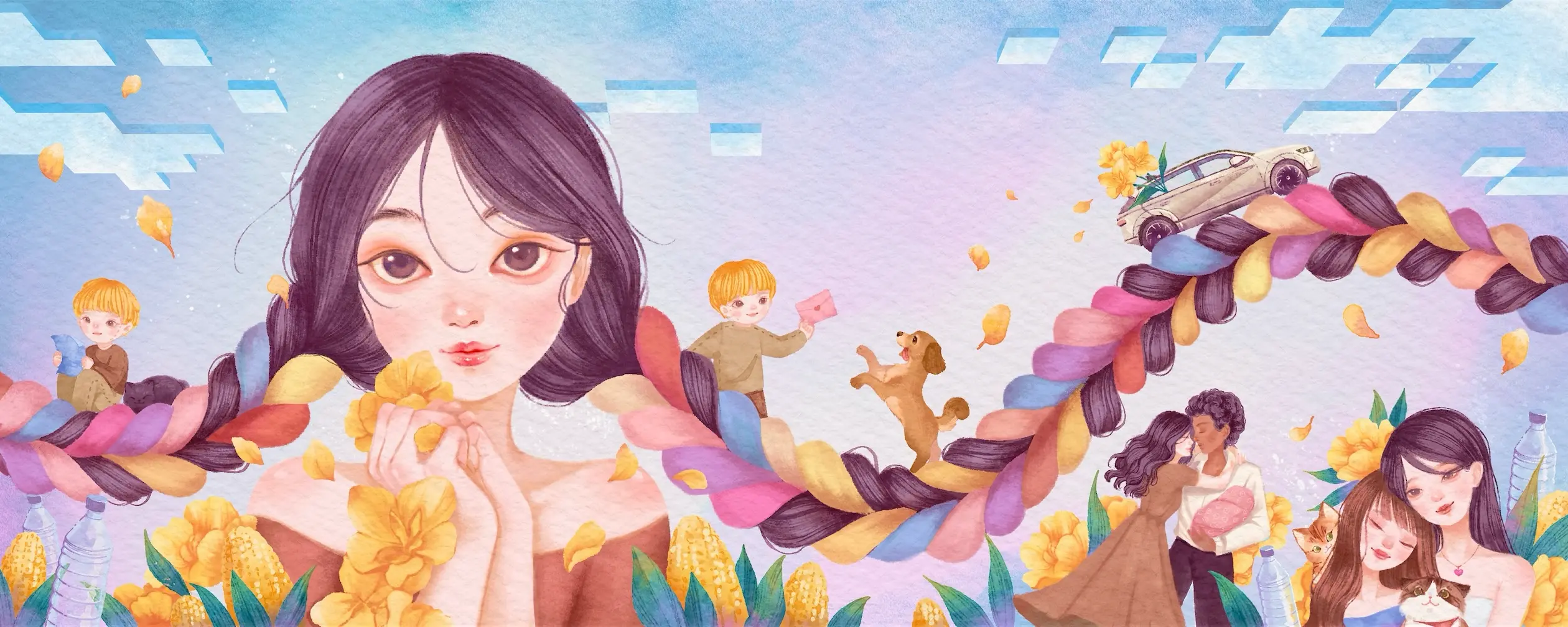 ผลงานศิลปะชิ้นนี้ของ Riety เล่าเรื่อง “ความรักในทุกมิติของชีวิตที่อยู่รอบตัว” ผ่านตัวละครหญิงผู้มีเส้นผมยาวพลิ้วไหว