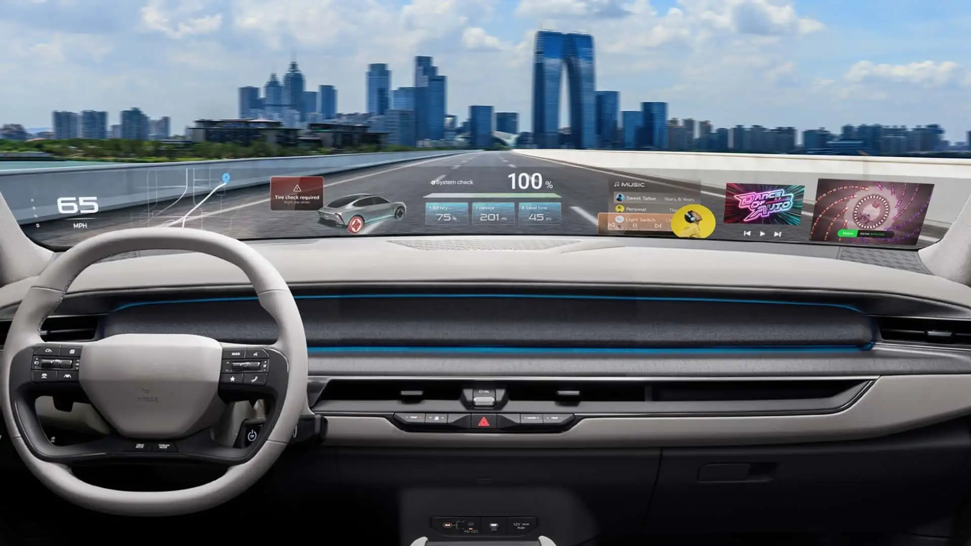 ระบบนี้ใช้ฟิล์มใสบางพิเศษติดตั้งบนกระจกหน้ารถ ร่วมกับโปรเจ็กเตอร์ที่ฉายภาพนิ่ง และวิดีโอ ออกแบบให้ไม่รบกวนการมองเห็นระหว่างขับขี่ ทั้งคนขับและผู้โดยสารจะเห็นภาพกราฟฟิคที่แตกต่างกัน นอกจากนี้ยังช่วยลดความซับซ้อนภายในรถ ไม่ต้องมีแดชบอร์ดขนาดใหญ่ ทำให้มุมมองโล่งขึ้น ดีไซน์ภายในได้สวยงามขึ้น