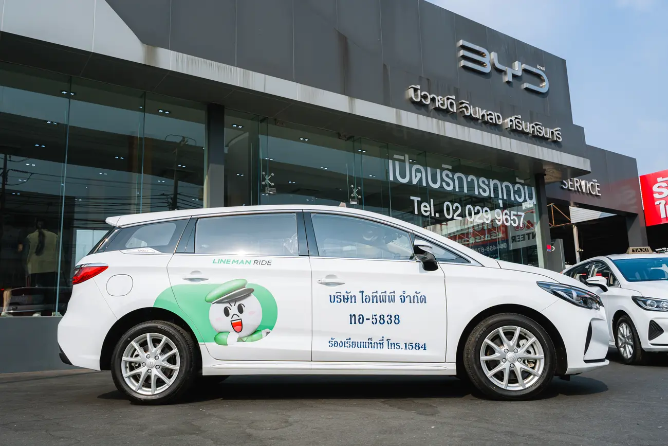 LINE MAN RIDE ร่วมมือกับ บริษัท ไอทีพีพี จำกัด เดินหน้าขับเคลื่อนโครงการ “LINE MAN EV” นำรถยนต์ไฟฟ้า BYD มาให้บริการ เพื่อยกระดับรถแท็กซี่ไฟฟ้าในกรุงเทพมหานคร และปริมณฑล สนับสนุนนโยบายสังคมคาร์บอนต่ำของประเทศ พร้อมยกระดับคุณภาพชีวิตของผู้ขับขี่และผู้ใช้บริการอย่างยั่งยืน