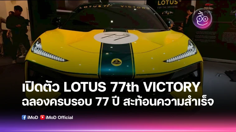 โลตัส คาร์ ประเทศไทย ฉลองยิ่งใหญ่ครบรอบ 77 ปี ตอกย้ำความเป็นผู้นำตลาดรถสปอร์ตไฟฟ้าด้วยยอดขายอันดับ 1 ในภูมิภาคเอเชียแปซิฟิก พร้อมเปิดตัวยนตรกรรมรุ่นพิเศษ ‘LOTUS 77th VICTORY’ ที่ผสานตำนานรถแข่งเข้ากับความล้ำสมัยของ Lotus Eletre และมอบข้อเสนอสุดเอ็กซ์คลูซีฟส่งท้ายปี เพื่อตอบแทนความไว้วางใจของลูกค้าชาวไทย