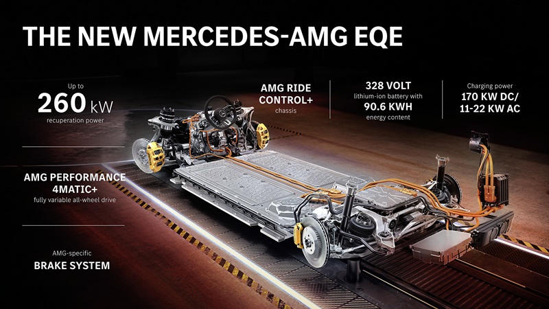 - มาพร้อมระบบขับเคลื่อน 4 ล้อ Fully Variable All-Wheel Drive AMG Performance 4MATIC+ มอเตอร์ไฟฟ้าแบบคู่ Permanently Excited Synchronous Motors (PSM) ให้พละกำลังสูงสุด 687 แรงม้า แรงบิดสูงสุด 1,000 นิวตันเมตร แบตเตอรี่ความจุ 90.6 kWh