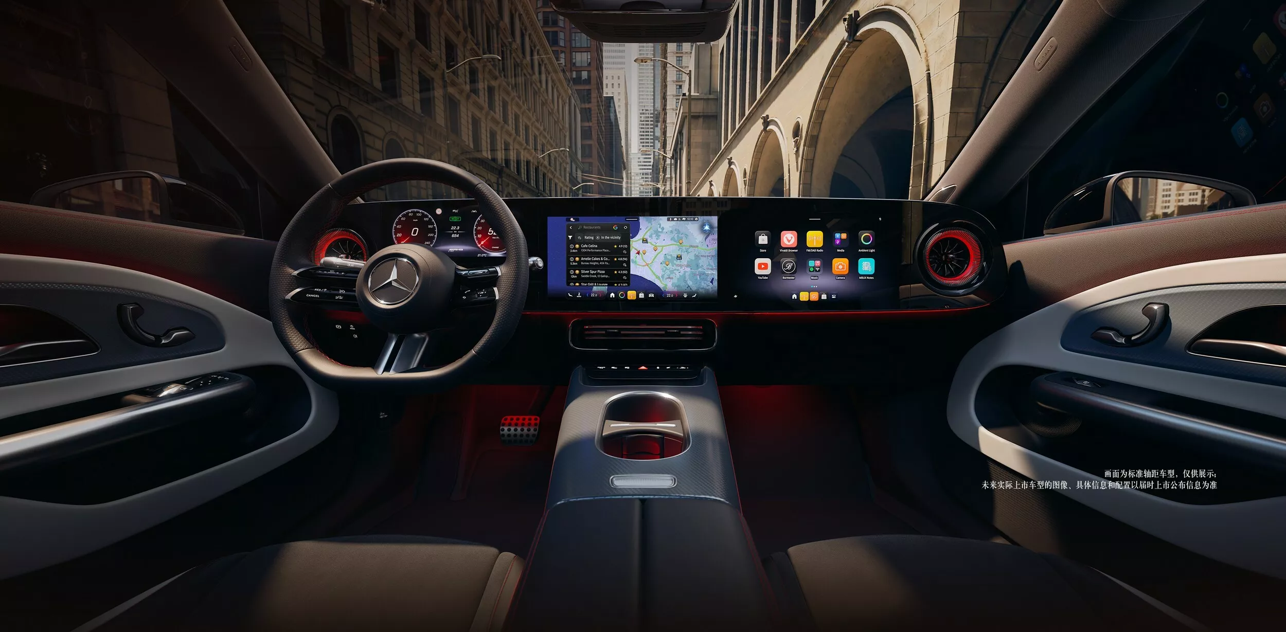ระบบความบันเทิงคันนี้ใช้ MB.OS เวอร์ชันพิเศษสำหรับตลาดจีนโดยเฉพาะ ที่มีผู้ช่วยเสียง MBUX Virtual Assistant ซึ่งใช้เสียงพากย์โดยนักพากย์ท้องถิ่น และระบบ AI “DouBao” จาก ByteDance รวมถึงมีระบบนำทาง และฐานข้อมูลที่พัฒนาเฉพาะสำหรับผู้ใช้งานในจีน