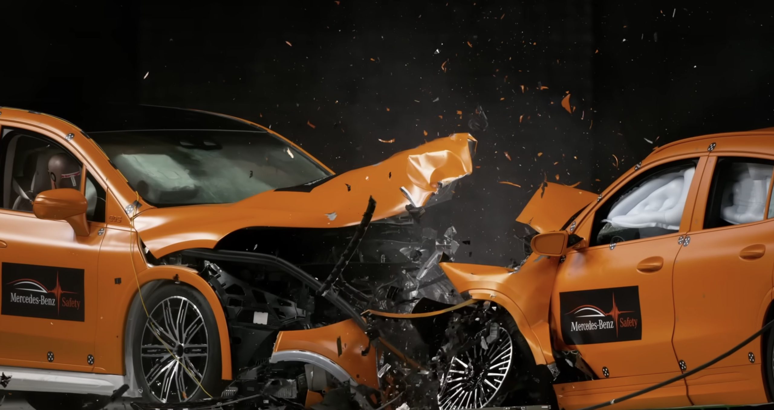 Mercedes-Benz โชว์การทดสอบการชนของรถยนต์ไฟฟ้า 2 คัน เพื่อพิสูจน์ด้านความปลอดภัยที่มอบให้กับผู้โดยสาร