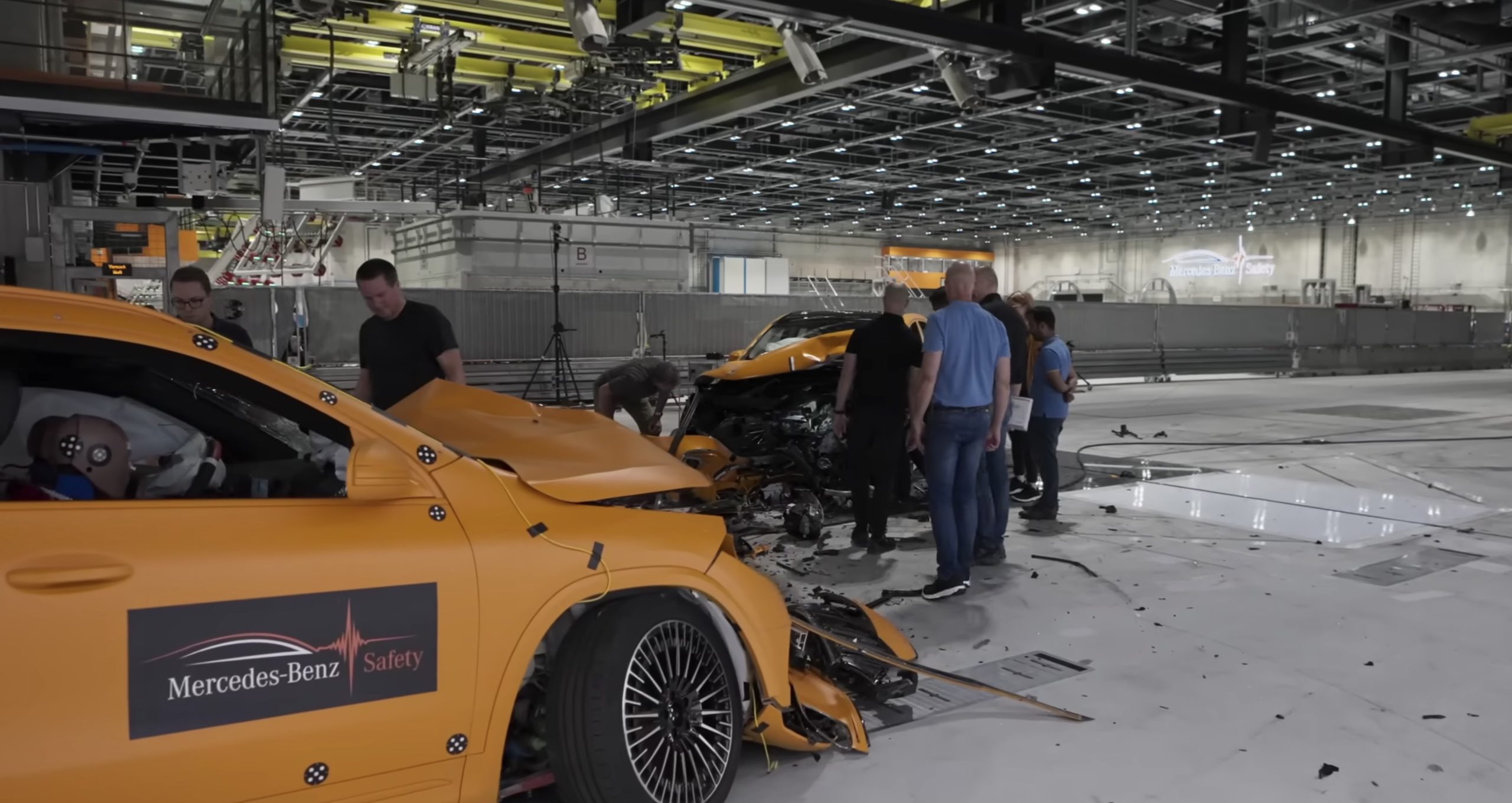 จากการทดสอบด้านความปลอดภัยของ Mercedes-Benz โดยการนำรถ 2 รุ่นมาชนกันนั้น สังเกิดได้ว่ารถเกิดความเสียหายจนดูน่าตกใจในตอนแรก แต่เมื่อดูภาพสโลโมชันแล้ว เห็นได้ว่าส่วนของห้องโดยสารยังคงสภาพเดิม ไม่ได้รับความเสียหายมากนัก รวมถึงประตูรถทั้งสองบานยังสามารถเปิดออกได้