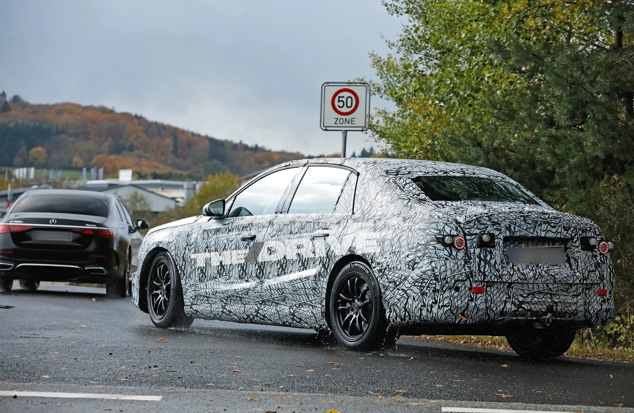 นอกจากรุ่นไฟฟ้าแล้ว Mercedes ยังมีแผนปรับโฉมรุ่น E-Class เครื่องยนต์เบนซิน คาดว่าจะออกมาทดสอบบนถนนในไม่ช้า แต่ภาพที่เห็นในตอนนี้ยืนยันได้ว่ารถคันนี้คือรุ่นไฟฟ้าแน่นอน เพราะไม่มีช่องท่อไอเสียปรากฏให้เห็น และส่วนที่เคยเป็นปลายท่อถูกปิดทับด้วยวัสดุพรางตัวอย่างมิดชิด