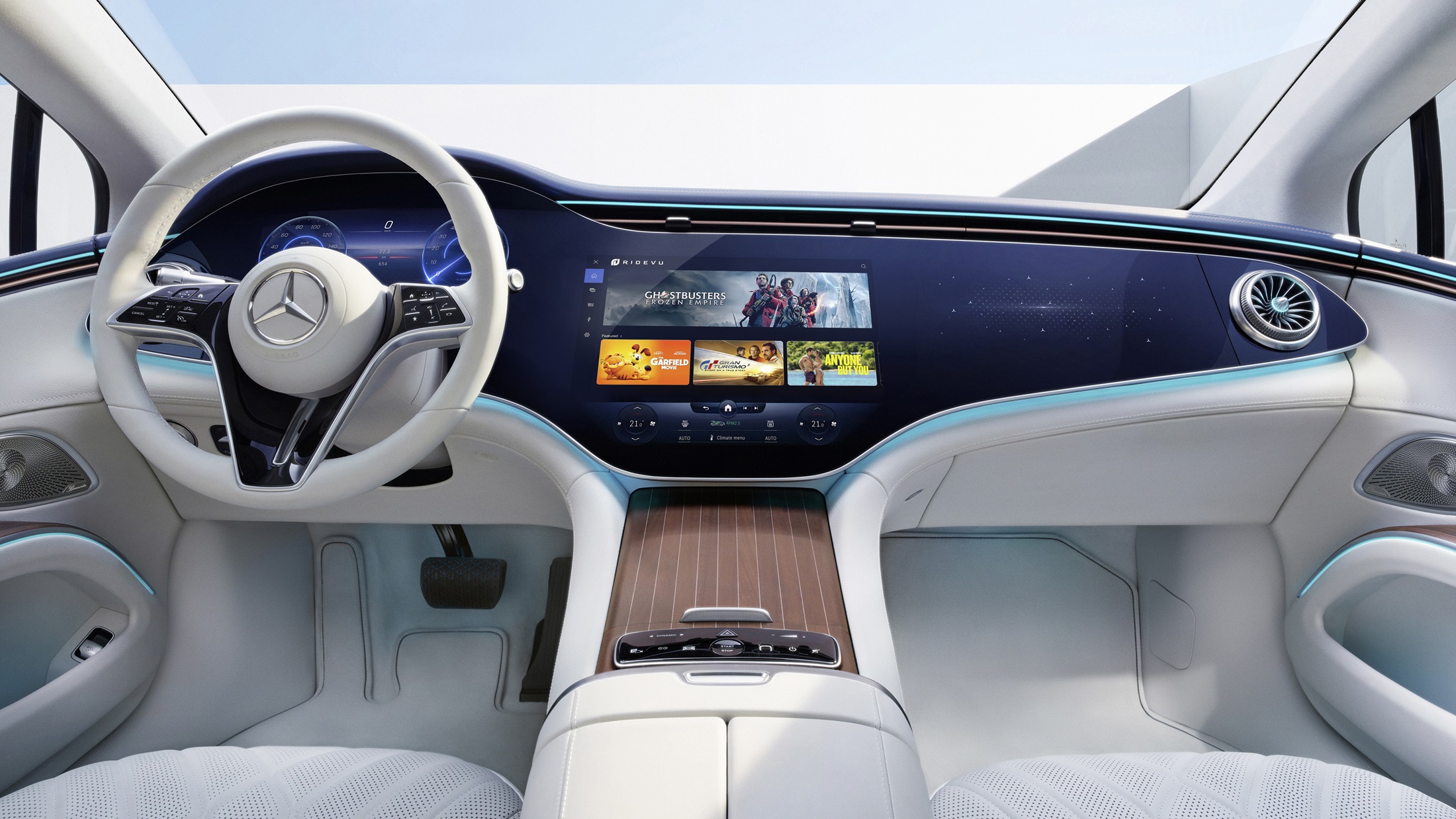 เมอร์เซเดส-เบนซ์ เปิดให้ลูกค้าเข้าถึงบริการวิดีโอดิจิทัลในรถยนต์ผ่านแอปพลิเคชัน “RIDEVU” ซึ่งถูกพัฒนาขึ้นโดย Sony Pictures Entertainment ผสานการทำงานร่วมกับระบบปฏิบัติการ MBUX (Mercedes-Benz User Experience) ของเมอร์เซเดส-เบนซ์ ซึ่งสามารถรับชมภาพยนตร์และคอนเทนต์ ได้ทั้งแบบส่วนตัวหรือแชร์หน้าจอได้สูงสุดถึง 6 หน้าจอ