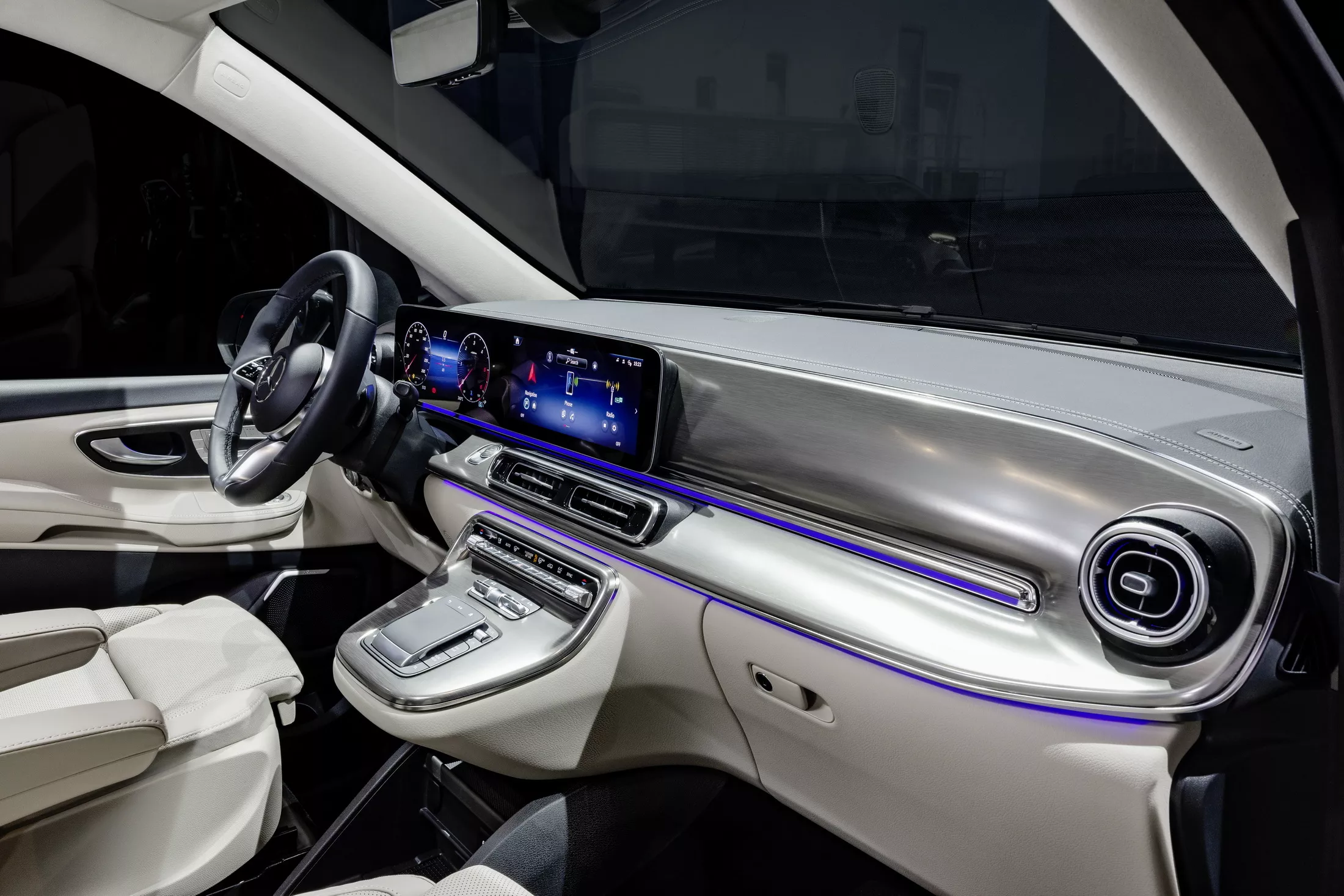 การตกแต่งภายในยังเป็นจุดเด่นอีกจุดหนึ่งของความแตกต่างระหว่างรถตู้โดยสารและรถตู้เชิงพาณิชย์ ในรุ่น V-Class และ EQV เป็นที่นั่งแบบ Captain Seat แยกอิสระ 6 ที่นั่ง, หน้าจอแสดงผลแบบยาวแผงเดียว ขนาด 12.3 นิ้ว, ช่องแอร์ และไฟสร้างบรรยากาศ ทำให้แดชบอร์ดดูพรีเมียมพอๆกับ รุ่นท๊อปของ Mercedes-Benz เลยทีเดียว