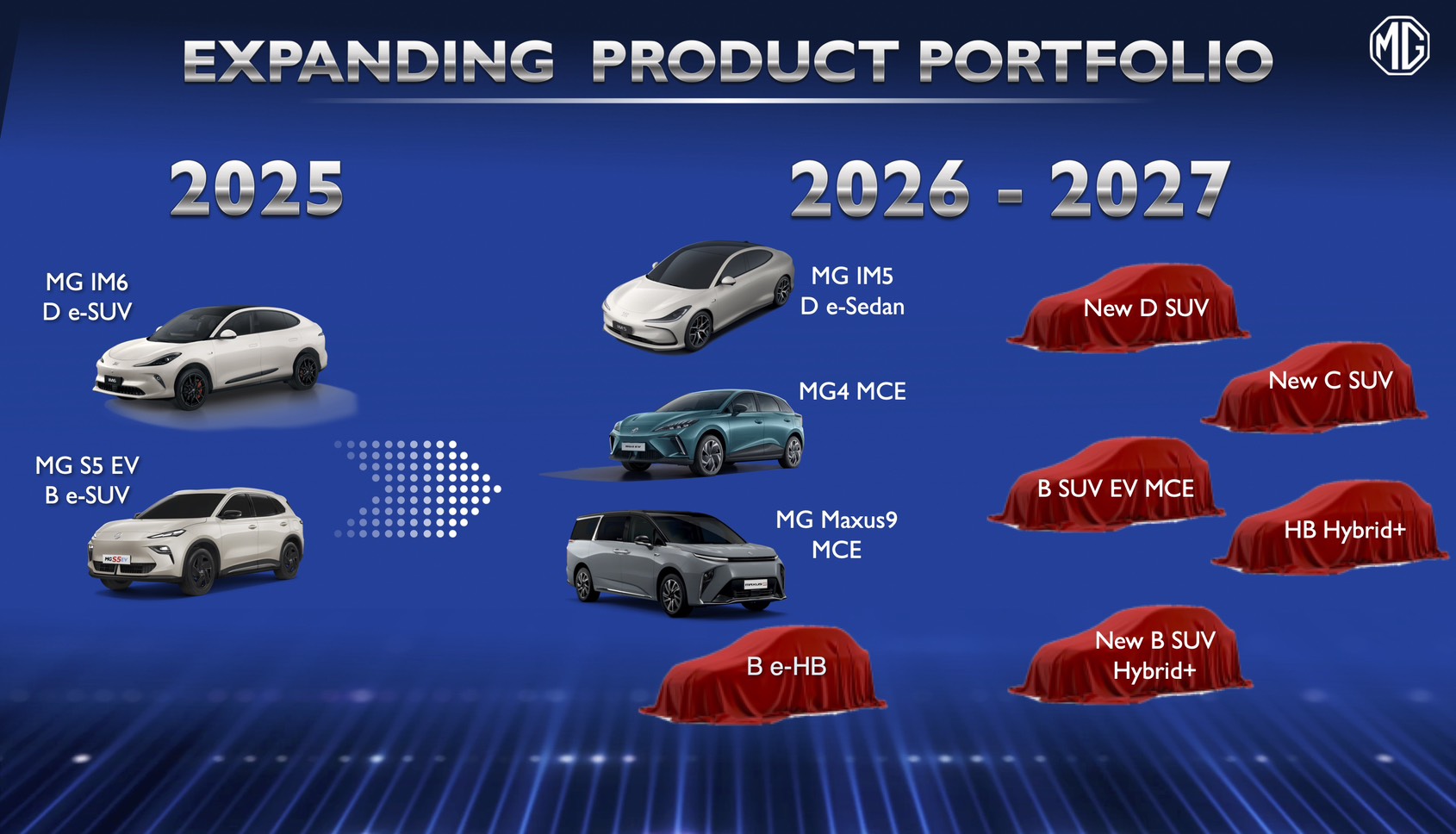 ภายใต้กลยุทธ์ “Dual Track” เอ็มจี เดินหน้าพัฒนาผลิตภัณฑ์ทั้งกลุ่มรถยนต์เครื่องยนต์สันดาป รถยนต์ไฮบริด และรถยนต์ไฟฟ้า ควบคู่กันอย่างชัดเจน พร้อมเปิดตัวรถใหม่อย่างต่อเนื่องในแต่ละไตรมาส เพื่อสร้างความสดใหม่ให้กับตลาด พร้อมรักษาความต่อเนื่องของไลน์อัปสินค้า และทำให้ผลิตภัณฑ์ของ เอ็มจี ตอบโจทย์ความต้องการของผู้บริโภคครอบคลุมในทุกเซกเมนต์