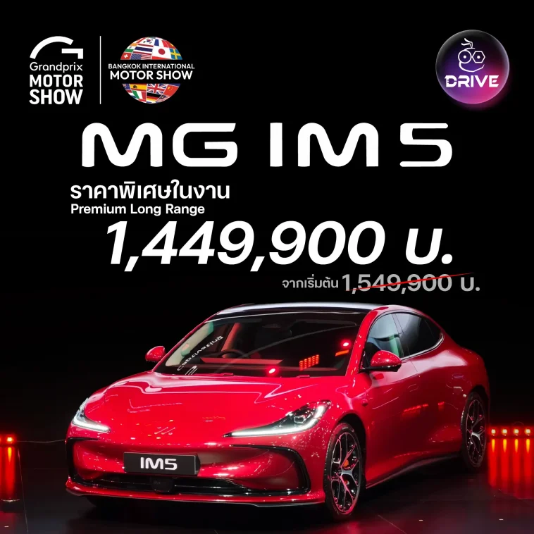 เปิดตัว MG IM5 Premium Long Range 860km NEDC แบต 800V ชาร์จไว 396kW ราคาที่ 1,549,900 บาท ราคาพิเศษ Motor Show 2026 เริ่ม 1,449,900 บาท พร้อมรับประกัน Lifetime Warranty