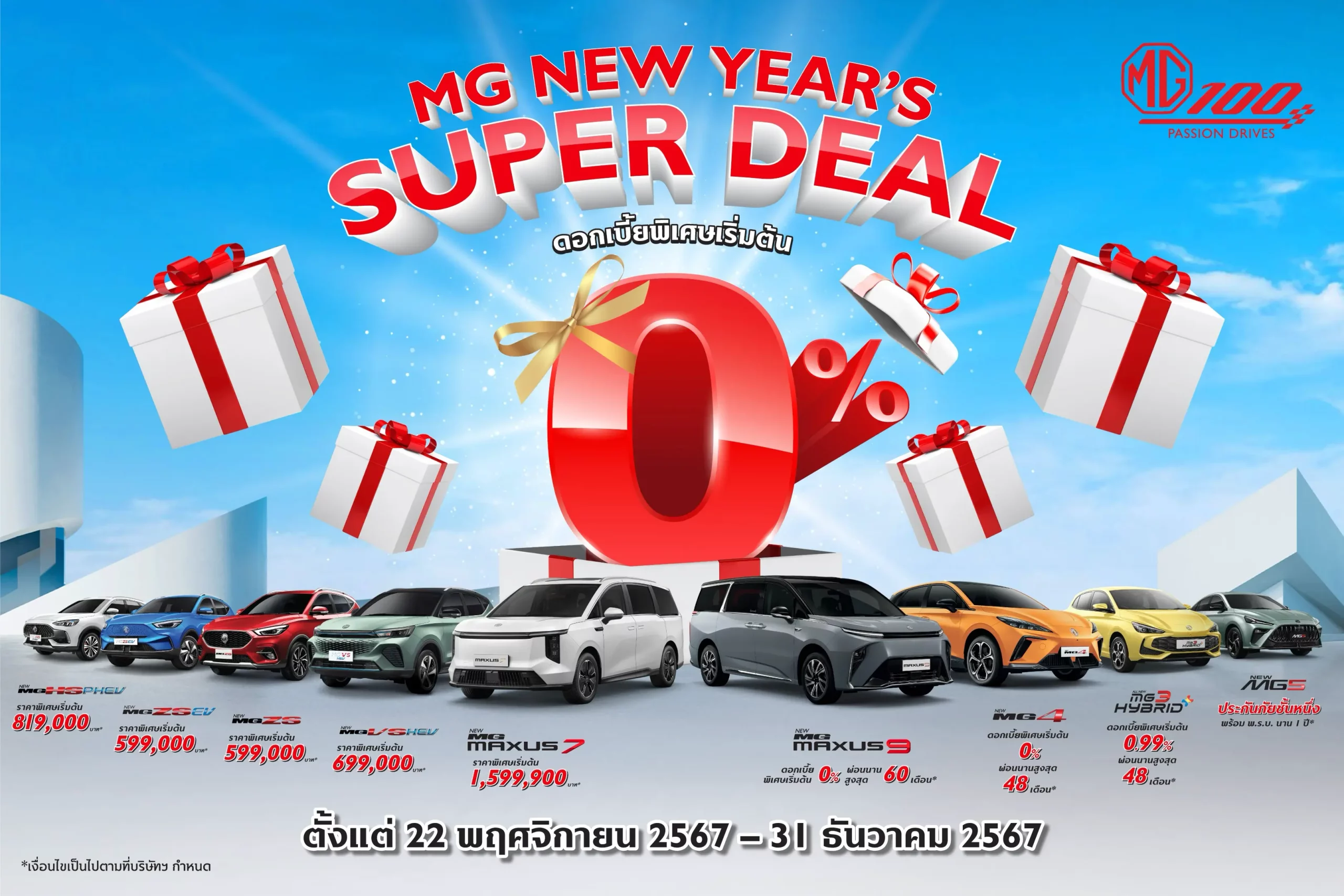นอกจากยนตรกรรมไฮไลท์ที่นำมาจัดแสดงแล้ว เอ็มจี ยังได้สร้างสรรค์แคมเปญพิเศษ NEW YEAR’S SUPER DEAL ที่เปิดโอกาสให้ผู้สนใจสามารถเป็นเจ้าของรถยนต์คุณภาพแบรนด์ เอ็มจี ได้ง่ายยิ่งขึ้น ด้วยหลากข้อเสนอสำหรับยนตรกรรมหลากรุ่น อาทิ ดอกเบี้ยเริ่มต้นพิเศษ 0% ผ่อนนานสูงสุด 5 ปี รวมถึงข้อเสนอช่วยผ่อนสูงสุด 5,000 บาท นานสูงสุด 20 เดือน ฯลฯ สำหรับลูกค้าที่จองตั้งแต่วันนี้ จนถึงวันที่ 31 ธันวาคม 2567