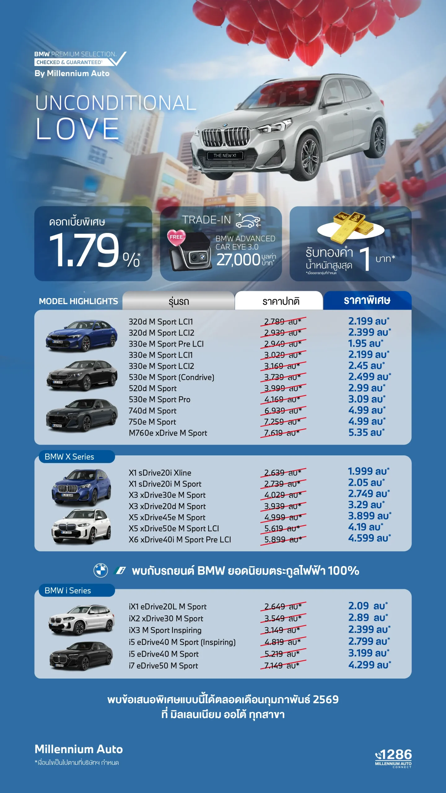 BMW Millennium Auto ออกรถลุ้นรับทองคำ พร้อมกิจกรรม UNCONDITIONAL LOVE 13-15 ก.พ.
