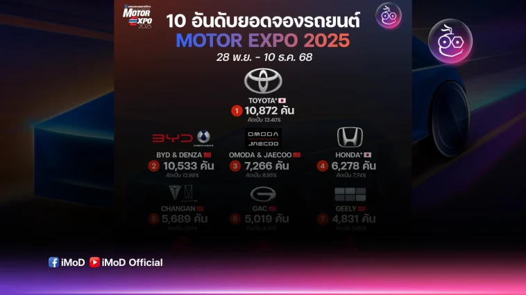 จบงาน Motor Expo 2025 เป็นที่เรียบร้อยแล้ว เรามาชมกันว่าแต่ละแบรนด์ทำยอดจองรถได้เท่าไหร่กันบ้าง