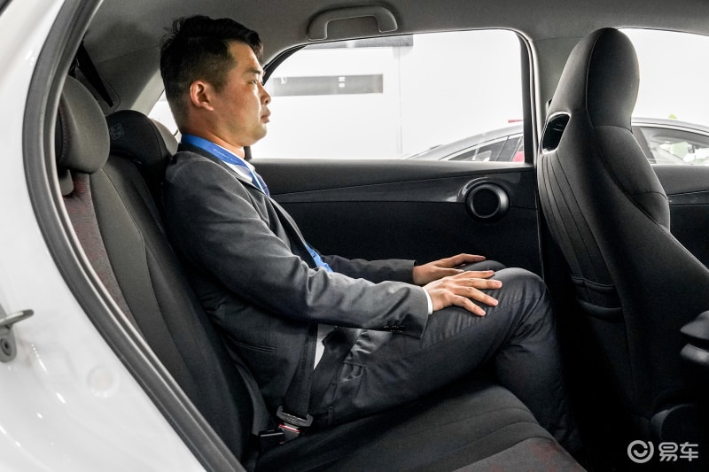 จากภาพ รถ BYD e2 เป็นรถยนต์ 5 ที่นั่ง พื้นที่วางขาและพื้นที่เหนือศีรษะ ก็ค่อนข้างโอเค