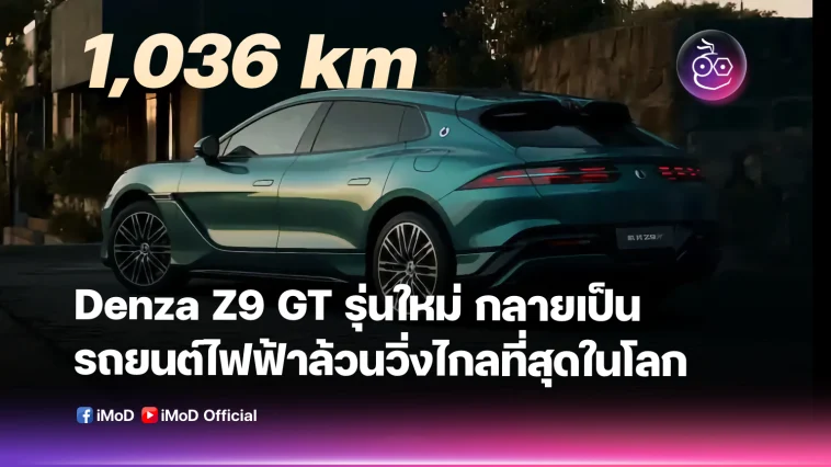 Denza แบรนด์รถยนต์ระดับหรูของ BYD ได้เผยโฉม Z9 GT รุ่นใหม่ พร้อมคำกล่าวอ้างว่าเป็น “รถยนต์ไฟฟ้าล้วนที่วิ่งได้ระยะทางไกลที่สุดในโลก” โดยสามารถวิ่งได้ไกลสูงสุดถึง 1,036 กิโลเมตร ตามมาตรฐาน CLTC