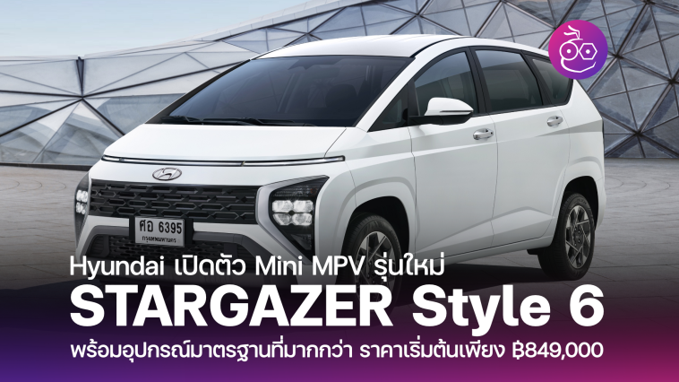 ฮุนได โมบิลิตี้ (ประเทศไทย) เขย่าตลาดกลุ่มรถยนต์มินิเอ็มพีวีอีกครั้งด้วยการเปิดตัว Hyundai STARGAZER Style 6 รุ่นใหม่ Mini MPV มาพร้อมอุปกรณ์มาตรฐานที่มากกว่า ทั้งภายนอก ภายในห้องโดยสาร และอุปกรณ์ความปลอดภัย พร้อมราคาเริ่มต้นเพียง 849,000 บาท