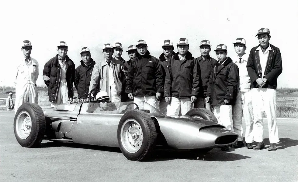 กลุ่มวิศวกรของฮอนด้าผู้ได้รับคัดเลือกเข้าร่วมทีมพัฒนา เพื่อเตรียมพร้อมสำหรับการเข้าร่วมแข่งขัน F1เป็นครั้งแรกในปี 1964