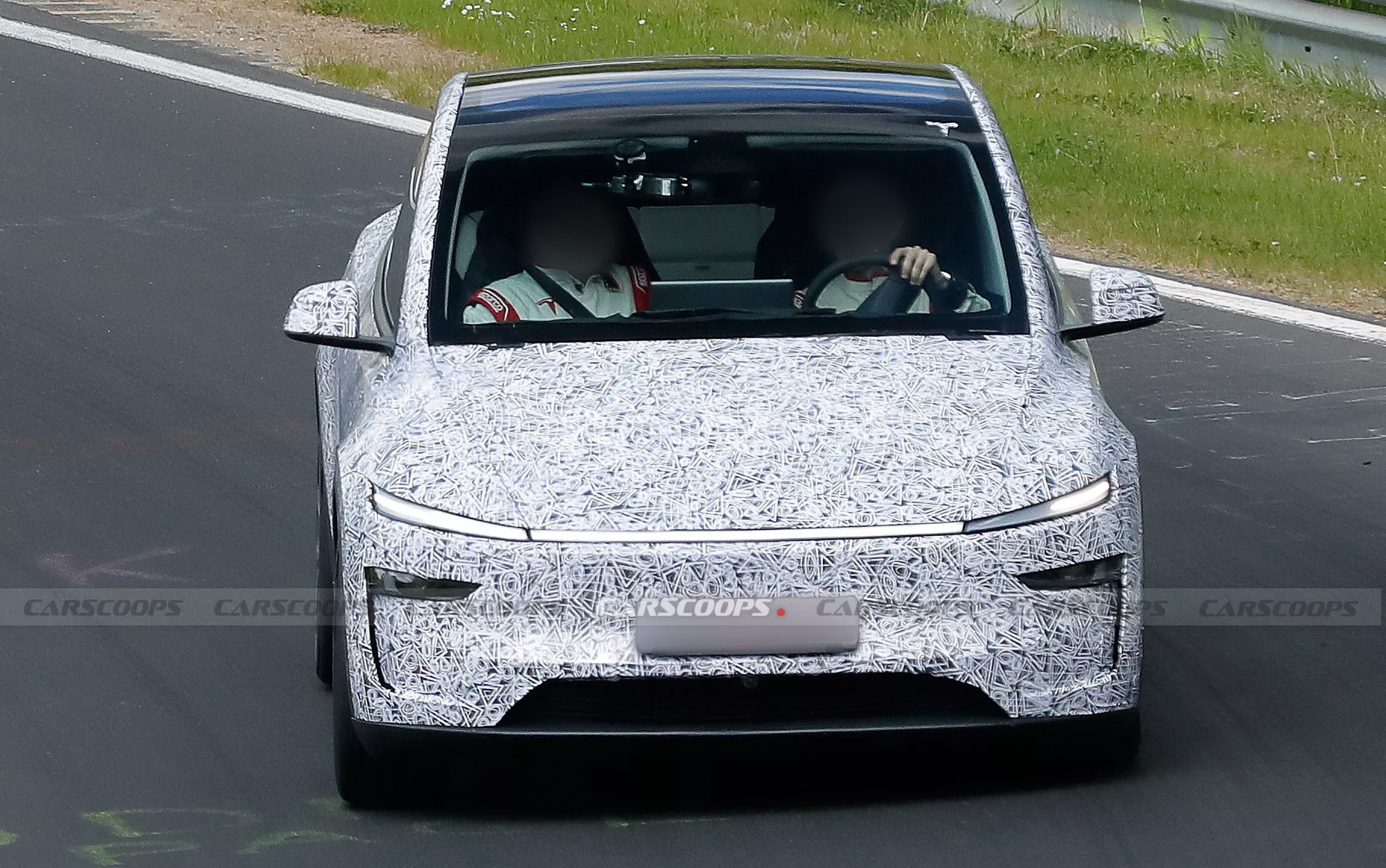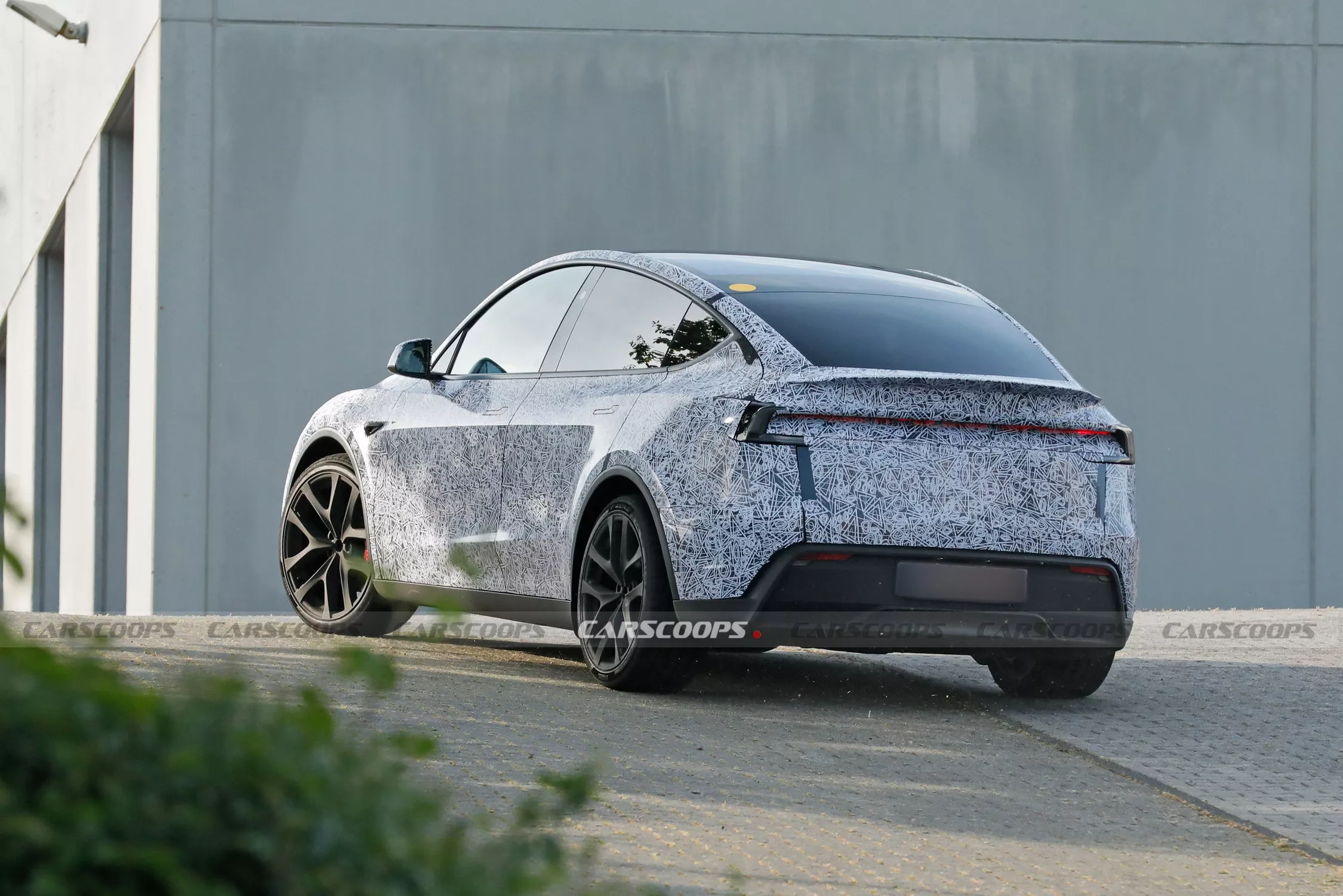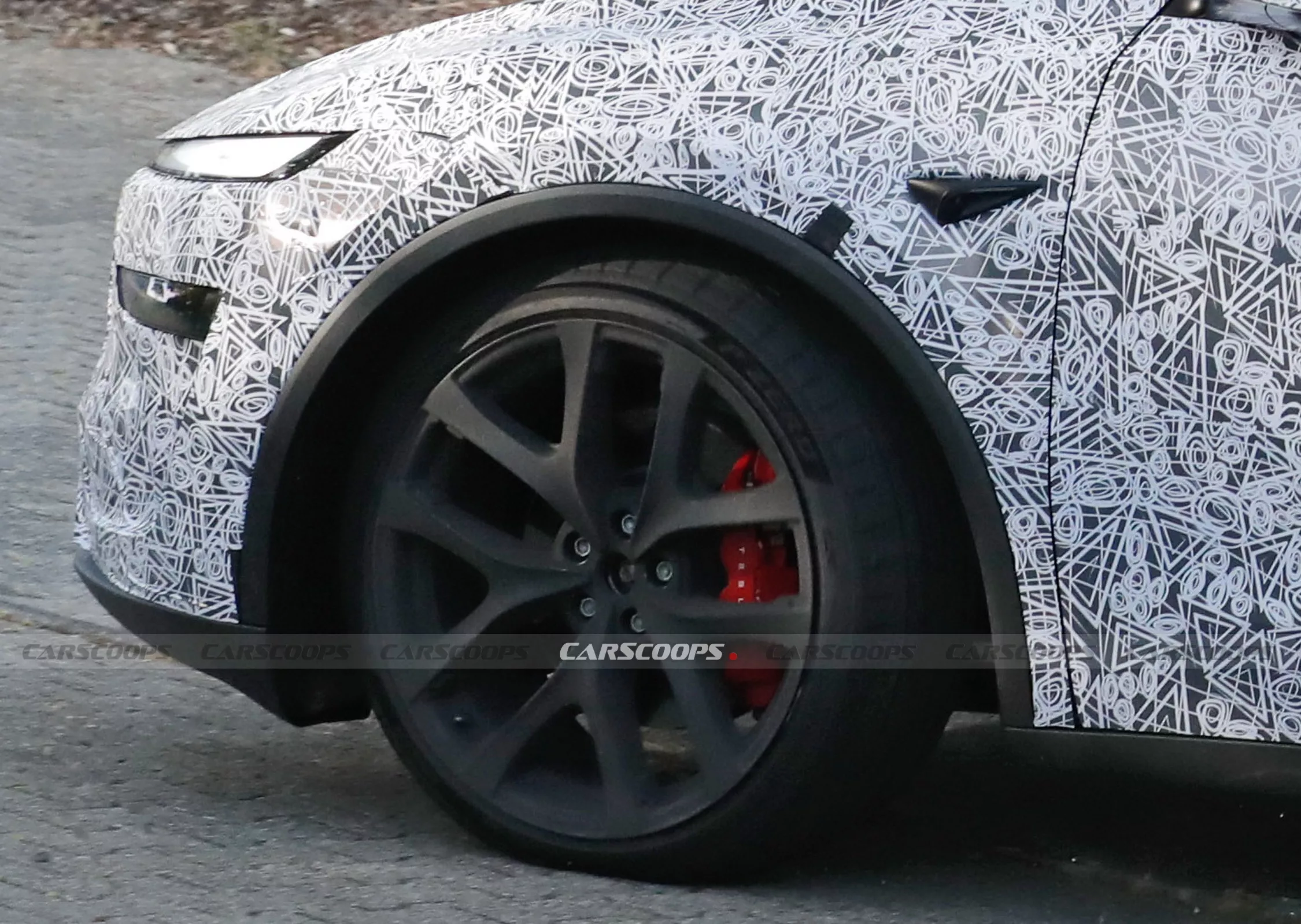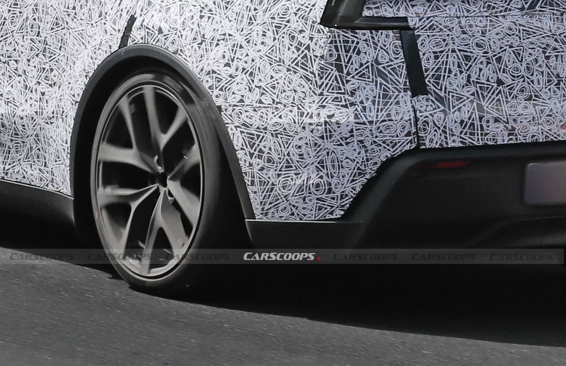รถต้นแบบที่วิ่งทดสอบที่สนาม Nürburgring ถูกหุ้มด้วยลายพรางขาวดำทั้งคัน จากภาพถ่ายทำให้เห็นรายละเอียดบางจุด เช่น สปอยเลอร์ด้านหลังแบบใหม่ที่มีรูปร่างชัดเจนขึ้น คล้ายกับรุ่น Performance ในเจเนอเรชันก่อน โดยคาดว่าเป็นวัสดุคาร์บอนไฟเบอร์ และอาจมีขายแยกใน Tesla Store สำหรับผู้ใช้รุ่นทั่วไปในอนาคต (แต่สปอยเลอร์ของ Model 3 Performance ก็ไม่ได้ขายแยก)