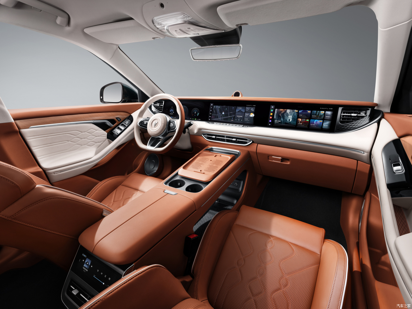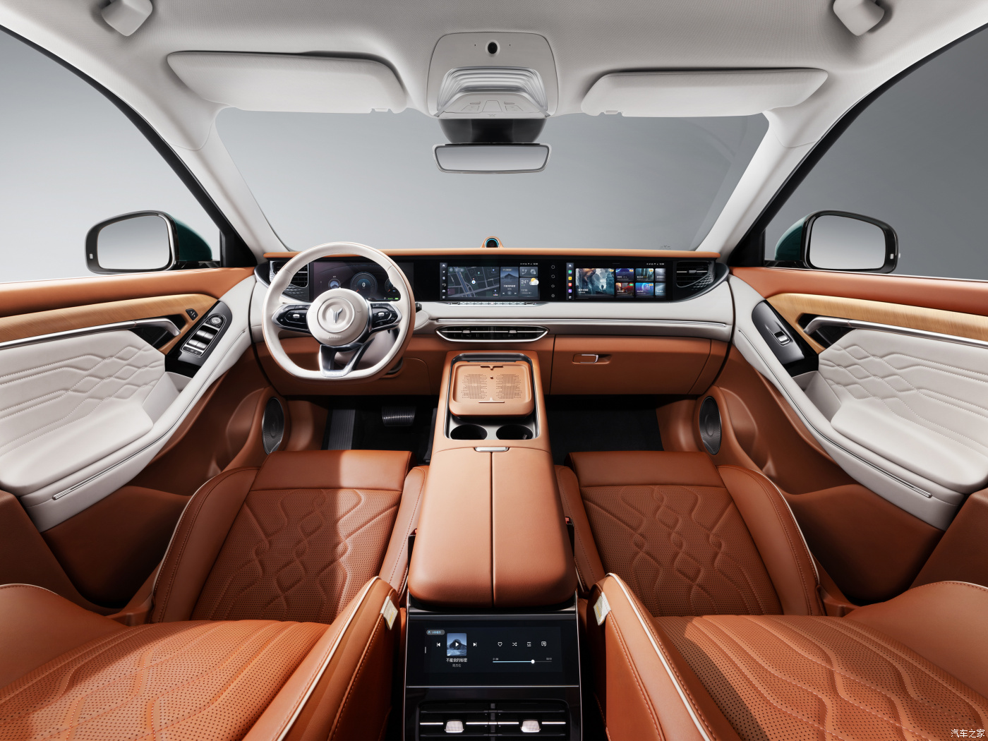 การตกแต่งภายในมีคอนโซลกลางที่ออกแบบใหม่ มีการออกแบบที่ดูสะอาดตายิ่งขึ้น ด้วยที่ชาร์จโทรศัพท์มือถือแบบไร้สาย 2 ตำแหน่ง กำลังไฟ 50W ที่วางแก้วน้ำ 2 ตำแหน่ง และมีปุ่มกดจริงแถวเล็กๆ อยู่บริเวณเหนือช่องแอร์ตรงกลาง ตัวเลือกตำแหน่งเกียร์อยู่หลังพวงมาลัย พวงมาลัยดีไซน์ทรง D-shape แบบ 3 ก้าน หน้าจอด้านหน้ามาพร้อม 3 หน้าจอ ที่มีขนาด 12.3 นิ้ว เท่ากันทั้ง 3 จอ มาพร้อมชิปประมวลผล Qualcomm Snapdragon 8155 และมีหน้าจอสัมผัสอีก 1 จอ สำหรับผู้โดยสารแถวที่ 2 ภายในมีไฟสร้างบรรยากาศ (Ambient Lights) 64 สี