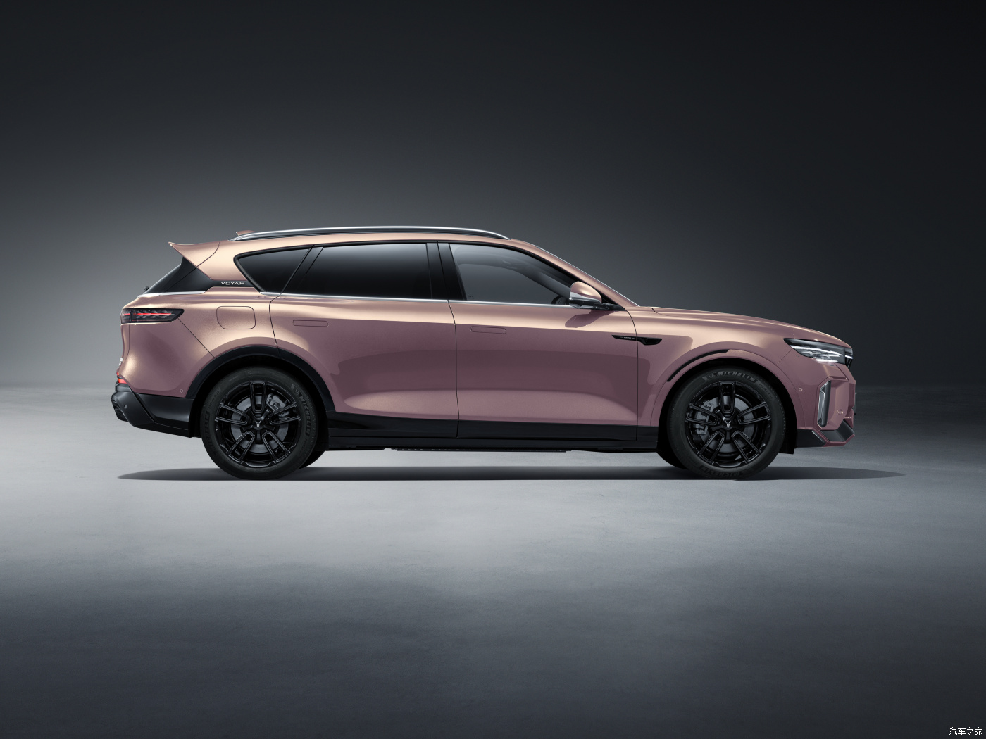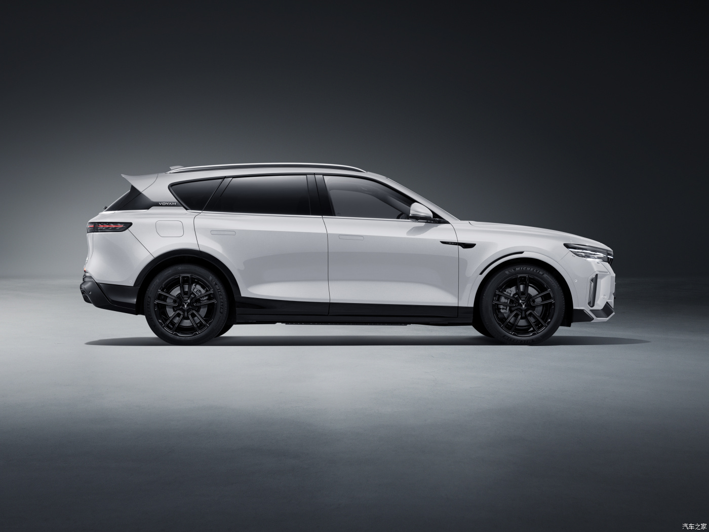 จากด้านข้างจะเห็นมือเปิดประตูราบเรียบไปกับตัวรถ มีเส้นสายสีโครเมียมที่ขอบประตูอยู่รอบคัน และมีราวหลังคาสีโครเมียมติดตั้งมาให้ด้วย และมีคำว่า Voyah ติดไว้บริเวณเสา C