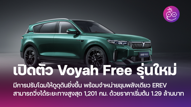 Voyah Free เป็นรถ SUV ขนาดกลาง ขุมพลัง Extended Range Electric Vehicle (EREV) ออกสู่ตลาดประเทศจีน ปัจจุบันวางจำหน่ายในประเทศจีนเพียงขุมพลังเดียวที่เป็น EREV ที่มีกำลัง 490 แรงม้า วิ่งได้ระยะทางรวมสูงสุด 1,201 กม. ตามมาตรฐาน CLTC และอัตราเร่งจาก 0-100 กม./ชม. เพียง 4.8 วินาที ด้วยราคาเริ่มต้น 266,900 หยวน (ประมาณ 1.29 ล้านบาท) ซึ่งเป็นราคาที่ถูกลง เมื่อเทียบกับรุ่นก่อนหน้าที่มีขุมพลังแบบเดียวกัน ที่มีราคา 333,600 หยวน (ประมาณ 1.62 ล้านบาท) มาดูรายละเอียดรุ่นดังกล่าวกันครับ