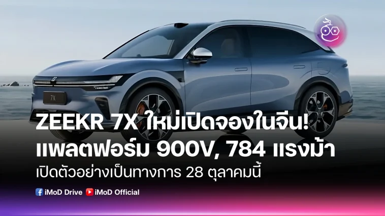 Zeekr ได้เปิดจอง Zeekr 7X รุ่นใหม่อย่างเป็นทางการแล้ว โดยครั้งนี้ถือเป็นการอัปเกรดสเปคครั้งใหญ่ที่น่าจับตามอง ทั้งการเพิ่มมอเตอร์ที่ทรงพลังขึ้นสูงสุดถึง 784 แรงม้า, แบตเตอรี่ที่ใหญ่ขึ้นทำให้วิ่งได้ไกลสุด 802 กม. (CLTC) และที่สำคัญคือการนำแพลตฟอร์ม 900V มาใช้เป็นมาตรฐาน