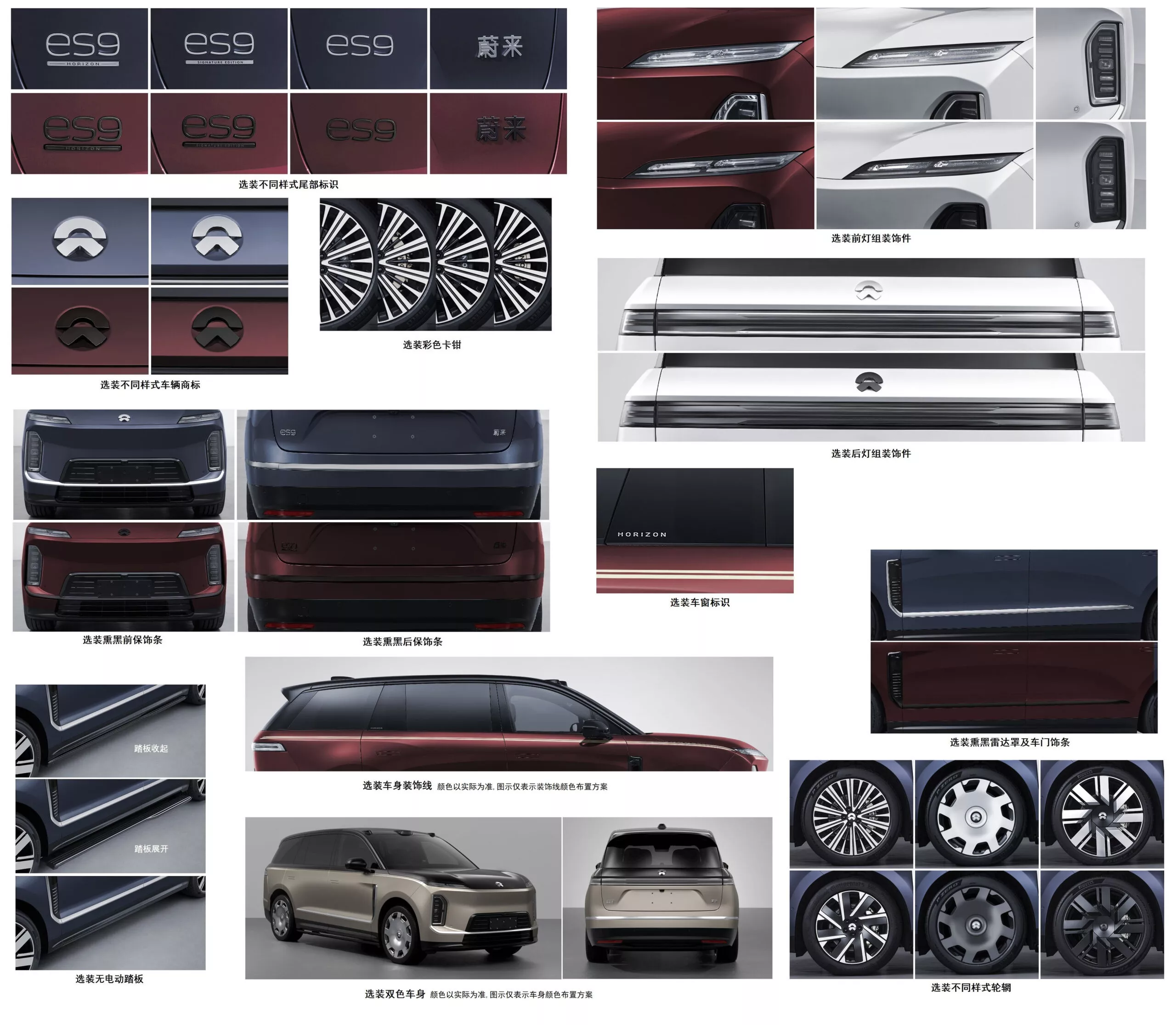 สำหรับการออกแบบ ES9 คงเอกลักษณ์ใกล้เคียงกับ ES8 แต่ด้านหน้าจะดูตั้งตรงและเหลี่ยมมากขึ้น ไฟ DRL และไฟหน้าแยกส่วนกัน พร้อมกระจังหน้าขนาดใหญ่ ติดตั้ง LiDAR บนหลังคาเพื่อรองรับระบบช่วยขับขั้นสูง