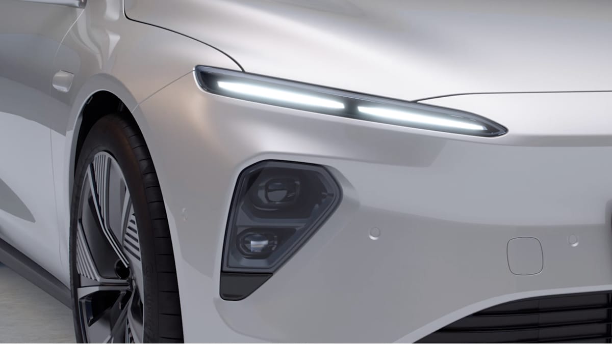 NIO ET7 มีไฟหน้าแบบ dual-beam LED ที่ทำงานคู่กันกับไฟหน้า Double-Dash ซึ่งเป็นไฟ daytime running และไฟท้ายแบบ Heartbeat taillight