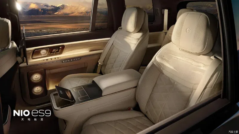 พื้นที่ด้านหลังหยิบยกดีไซน์ “Sky Island” และ “Executive Bridge” มาจากรุ่น ET9 โดยมีหน้าจอความบันเทิงขนาด 14.5 นิ้ว 2 จอ และหน้าจอควบคุมส่วนกลางด้านหลังขนาด 8 นิ้ว ภายในตกแต่งด้วยไม้จริงและหนัง Nappa สุดหรู