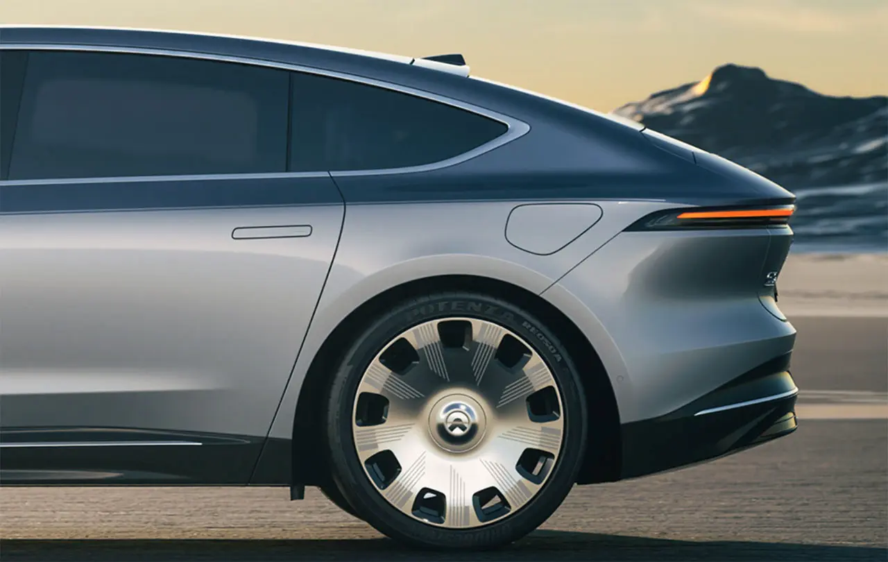 Nio ET9 Horizon Edition โดดเด่นด้วยการผสมผสานสีตัวถังแบบทูโทนระหว่าง สีน้ำเงินและสีเงิน รวมถึงการออกแบบล้อที่เป็นเอกลักษณ์เฉพาะรุ่น