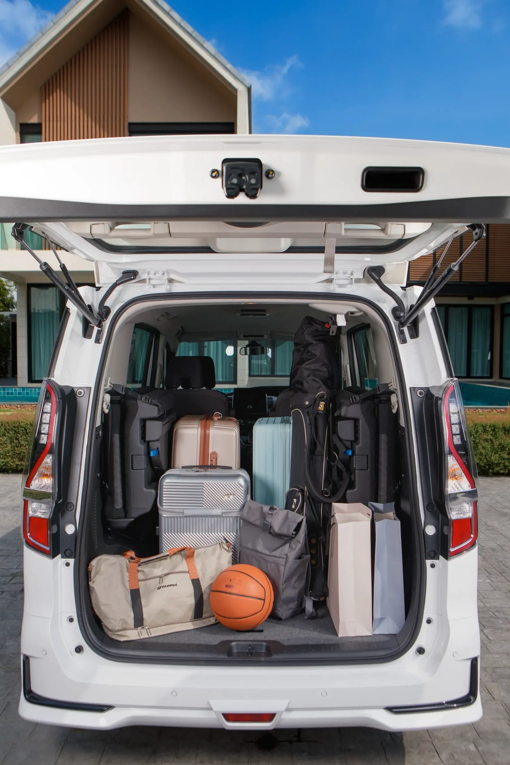 การออกแบบที่โดดเด่น ทำให้นิสสัน เซเรน่า ใหม่ มีพื้นที่มากพอสำหรับเก็บกระเป๋าเดินทางหรือสัมภาระขนาดใหญ่ทางด้านหลังโดยยังคงมีพื้นที่กว้างขวางนั่งสบายในเบาะที่นั่งแถว 3