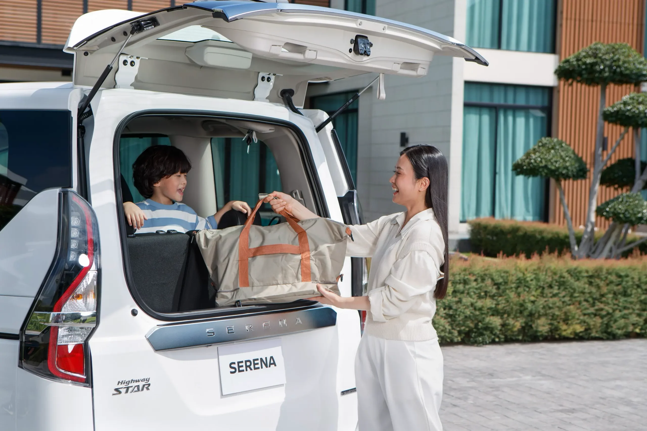 นิสสันเข้าใจเป็นอย่างดีถึงความต้องการของลูกค้าในการเดินทางเป็นกลุ่ม จึงได้ออกแบบให้ นิสสัน เซเรน่า ใหม่ ใช้งานได้ง่ายสำหรับทุกคน ประตูสไลด์อัตโนมัติพร้อมระบบแฮนด์ฟรี ช่วยให้เข้าออกจากรถได้สะดวกแม้ในขณะที่มือไม่ว่าง นิสสัน เซเรน่า ใหม่ ยังเป็นรถ MPV รุ่นเดียวในตลาดที่มีฝาท้ายอเนกประสงค์ (Dual Back Door) น้ำหนักเบา จึงเปิดได้ง่ายทั้งแบบเต็มบาน หรือครึ่งบาน เพิ่มความสะดวกแก่ผู้โดยสาร และผู้ขับขี่ให้สามารถเปิดฝาท้ายได้แม้จอดชิดด้านหลัง สัมภาระจึงไม่หล่นลงจากท้ายรถขณะเปิดปิด