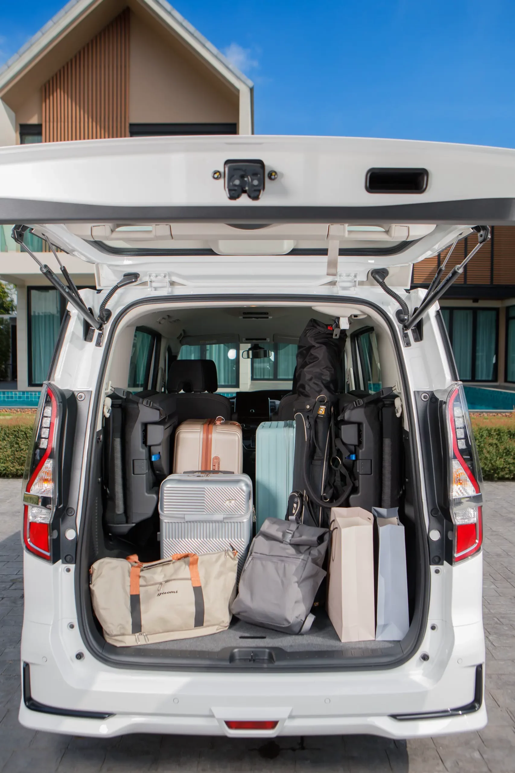 การออกแบบที่โดดเด่น ทำให้นิสสัน เซเรน่า ใหม่ มีพื้นที่มากพอสำหรับเก็บกระเป๋าเดินทางหรือสัมภาระขนาดใหญ่ทางด้านหลังโดยยังคงมีพื้นที่กว้างขวางนั่งสบายในเบาะที่นั่งแถว 3