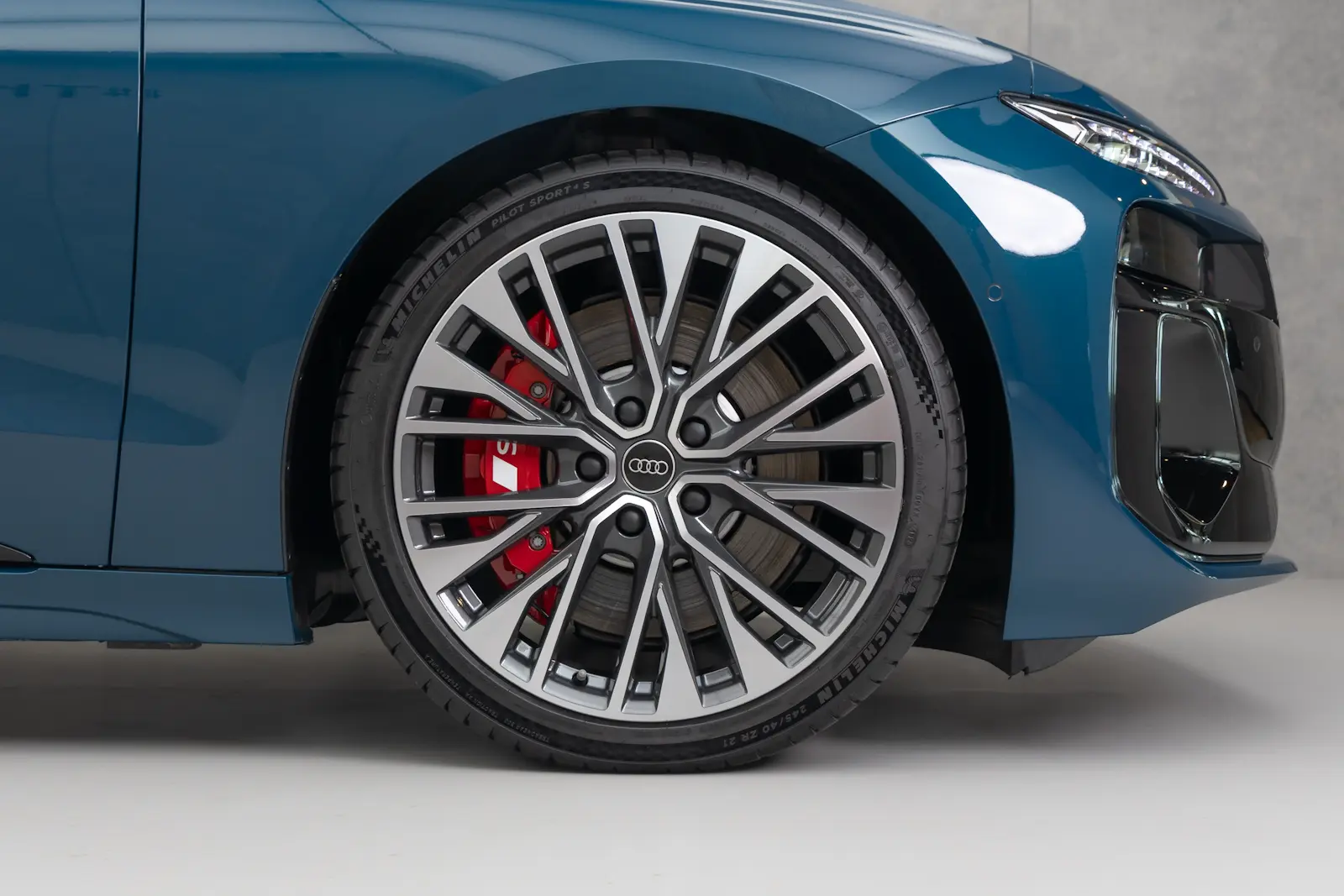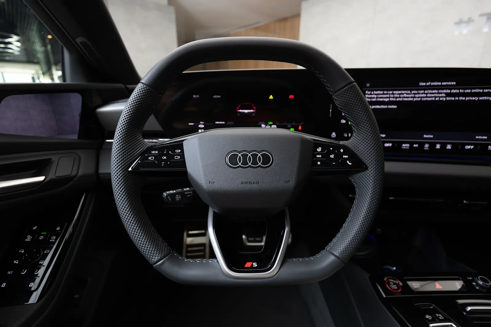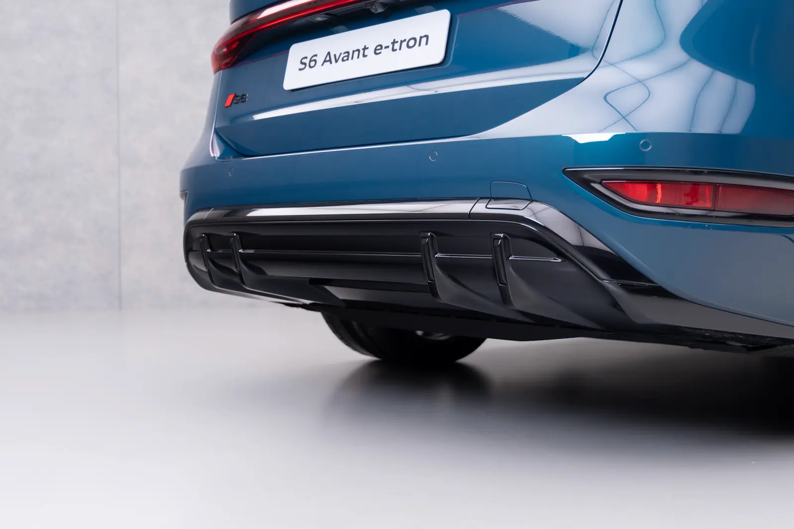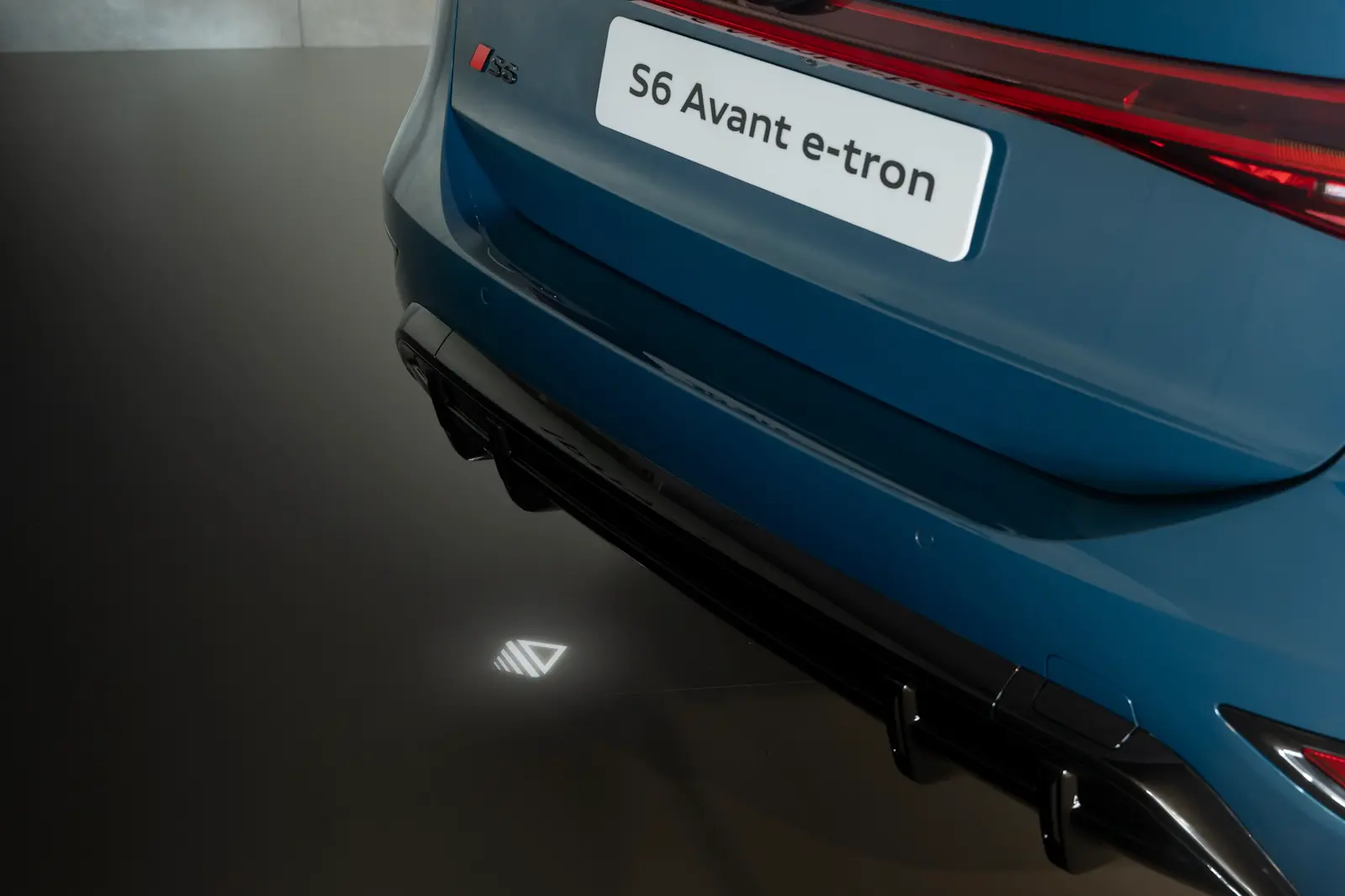 The all-new, fully electric Audi S6 e-tron ตกแต่งภายนอกแบบ S model รอบคัน ด้วยสี matte aluminum สะท้อนความเป็นรถ Performance อย่างเต็มขั้น มาพร้อมล้อดีไซน์ใหม่ multi-spoke S ขนาด 21 นิ้ว พร้อมคาลิปเปอร์เบรกสีแดง โดดเด่นด้วยไฟหน้า Matrix LED พร้อมเอฟเฟกต์ไฟ Digital light signatures หน้า-หลัง ที่ปรับเปลี่ยนดีไซน์ได้มากถึง 8 รูปแบบ เพิ่มความสปอร์ตด้วยไฟท้าย Digital OLED พร้อม taillight signatures ที่พาดยาวทั้งตัวรถด้านหลังและเสริมความล้ำสมัยด้วย Illuminated Audi rings โลโก้ไฟเรืองด้านหลังแบบ 2 มิติ ภายในตกแต่งด้วย Carbon Square Structure พร้อมตกแต่งตราสัญลักษณ์ S ที่พวงมาลัย เบาะคู่หน้า และกาบประตูทั้ง 2 ฝั่ง มอบ DNA ความสปอร์ตตามแบบฉบับ S model