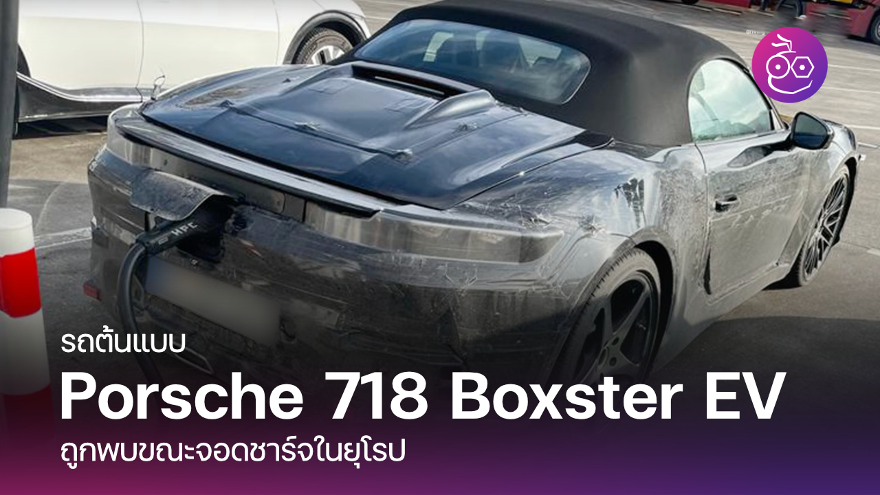 มีคนพบเห็น Porsche 718 Boxster ไฟฟ้า 100% กำลังจอดชาร์จไฟอยู่ในประเทศแถบยุโรป รถคันที่เห็นเป็นรถต้นแบบคันสีดำสภาพมอมแมมเล็กน้อย กำลังจอดชาร์จไฟฟ้าอยู่