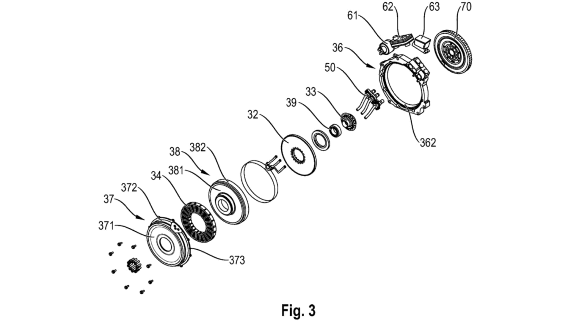 แทน Porsche จะติดตั้งมอเตอร์ไฟฟ้าแบบ Radial-flux (ที่ใช้ใน 911 Carrera GTS รุ่นปัจจุบัน) ภายในเกียร์ PDK, Porsche จะเปลี่ยนมาใช้มอเตอร์แบบ Axial-flux หน้าตาแบบแผ่นดิสก์บาง ๆ ติดตั้งอยู่ระหว่างเครื่องยนต์ และเกียร์