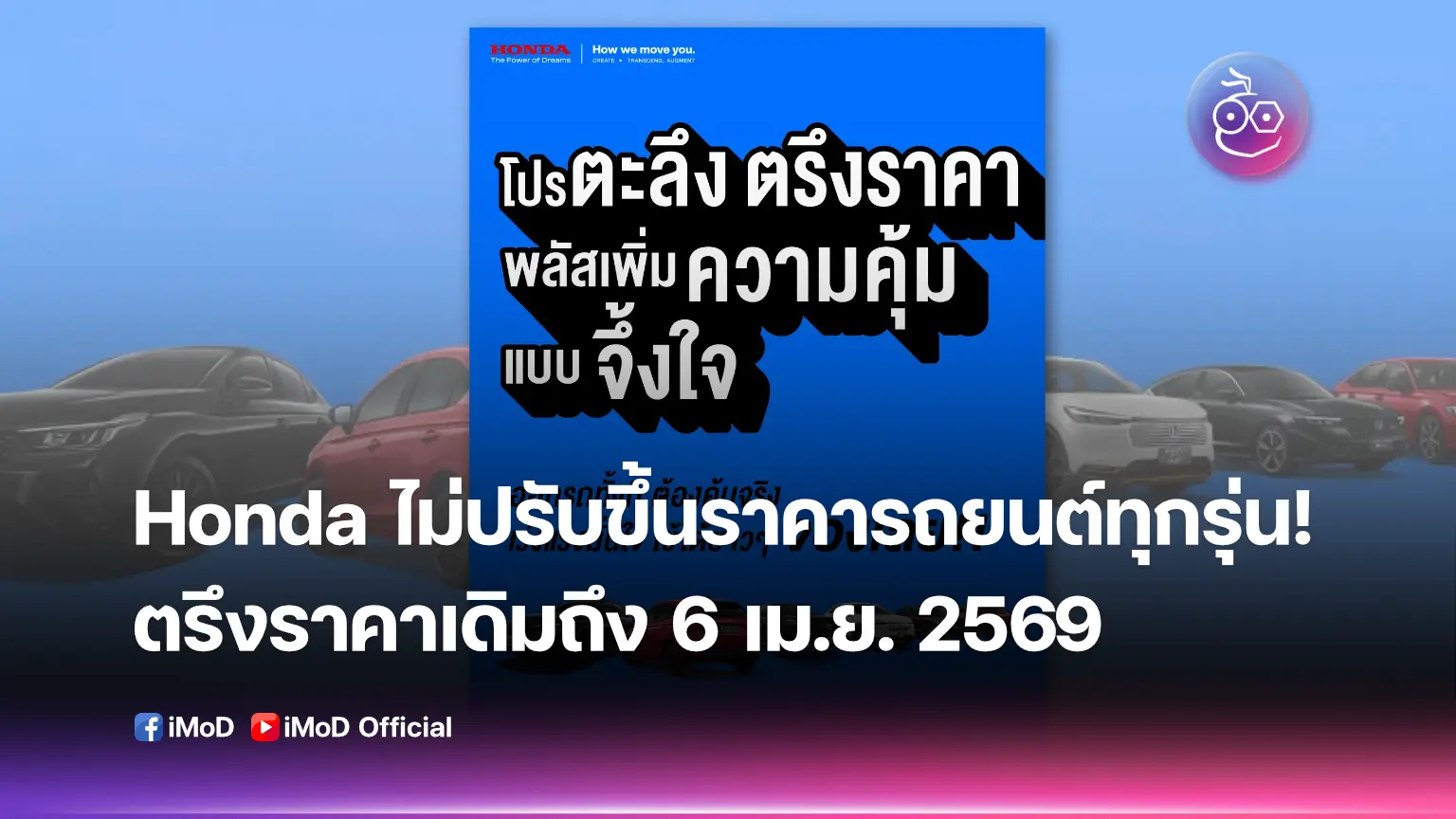 Honda ประกาศไม่ปรับขึ้นราคารถยนต์ทุกรุ่น! ยังคงราคาเดิมถึงวันที่ 6 เม.ย. 2569 พร้อมรับภาษีสรรพสามิตใหม่สำหรับรถยนต์ปี 2569